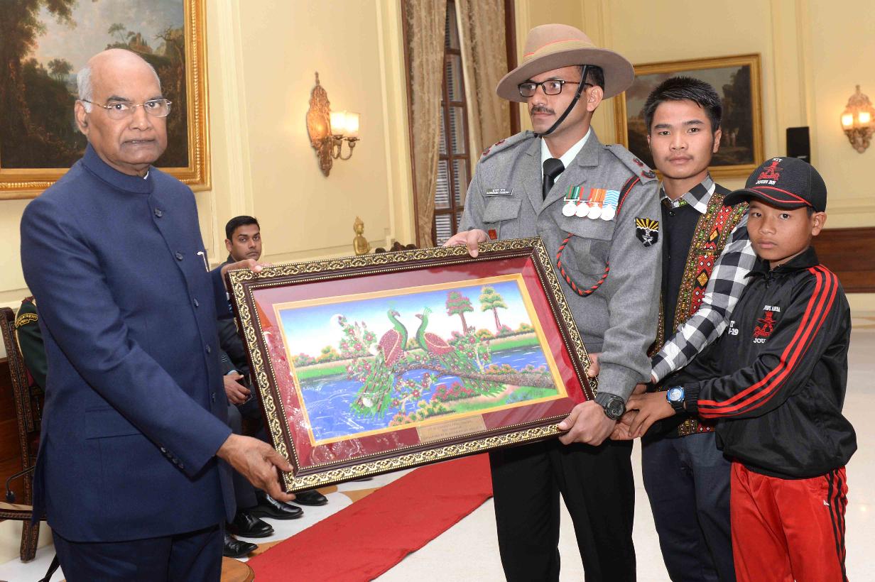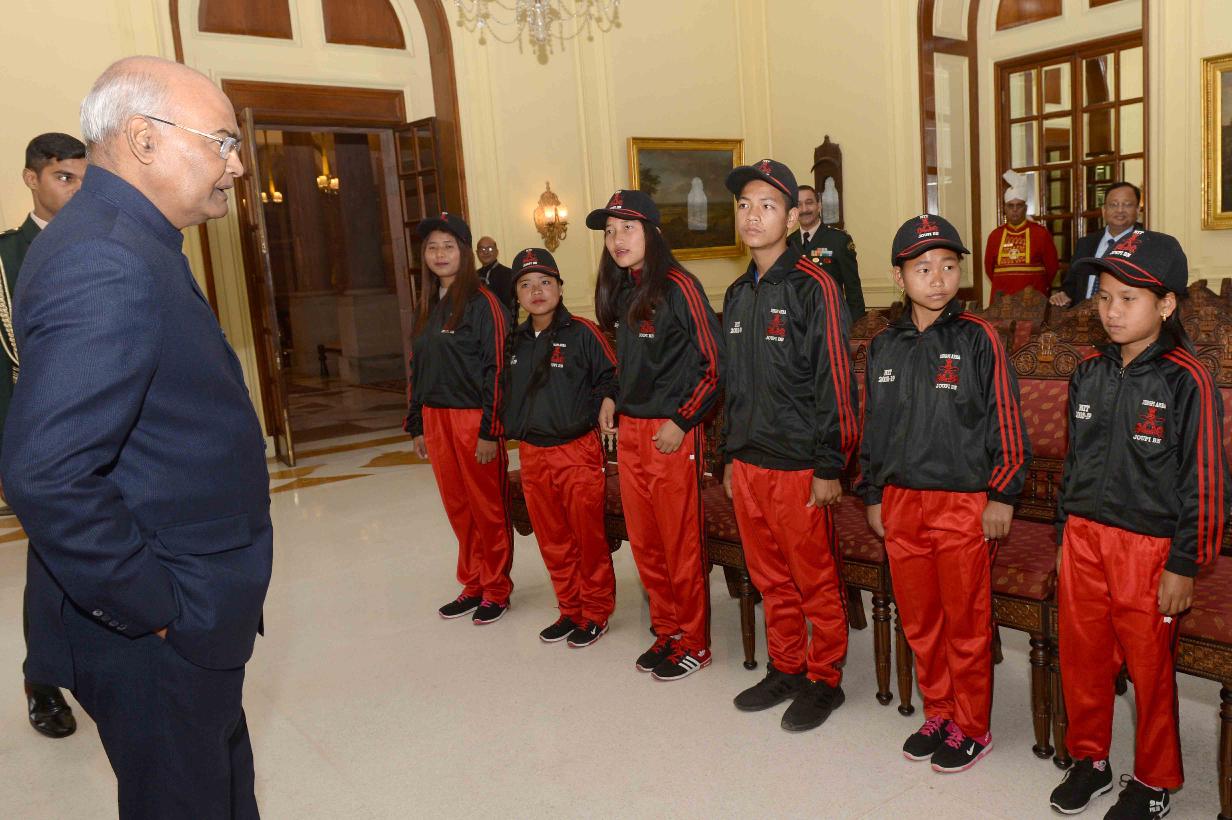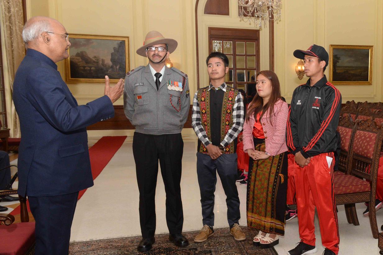 | Caption: | The President of India, Shri Ram Nath Kovind meeting with the students from Joupi (Manipur) attending the National Integration Tour, organised by 29 Assam Rifles, at Rashtrapati Bhavan on December 18, 2018. |