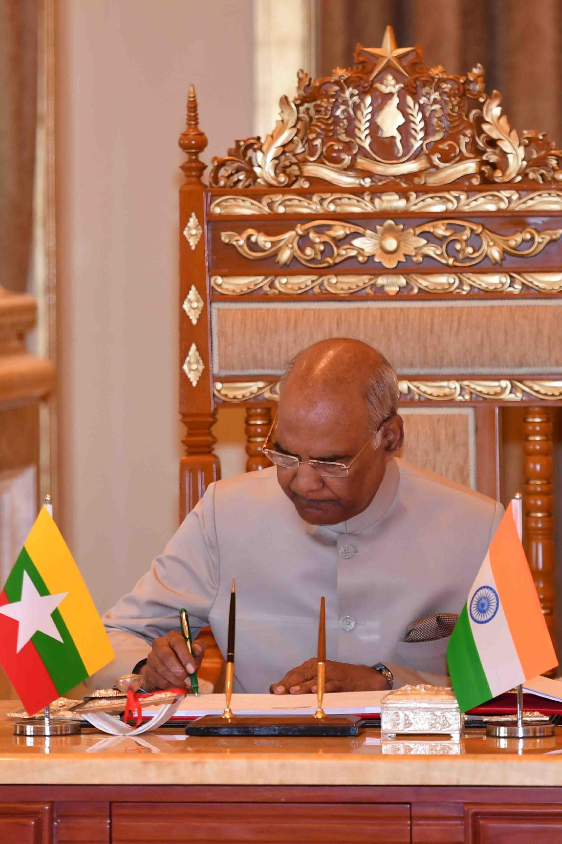 | Caption: | The President of India, Shri Ram Nath Kovind signing the Visitor's Book, at Presidential Palace, Nay Pyi Taw, in Myanmar on December 11, 2018. |