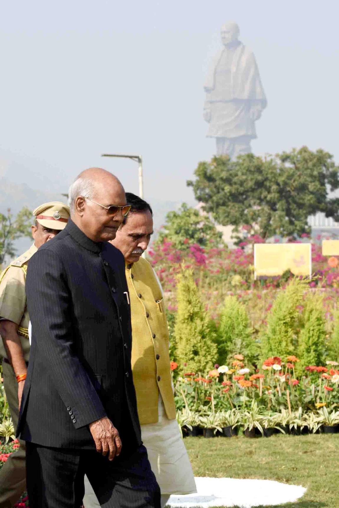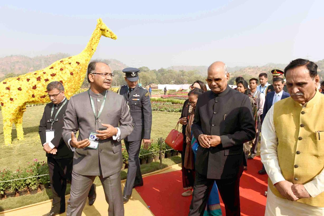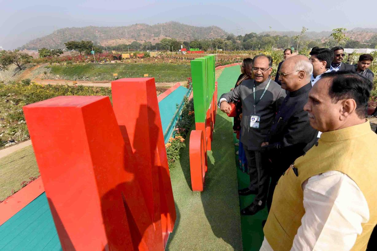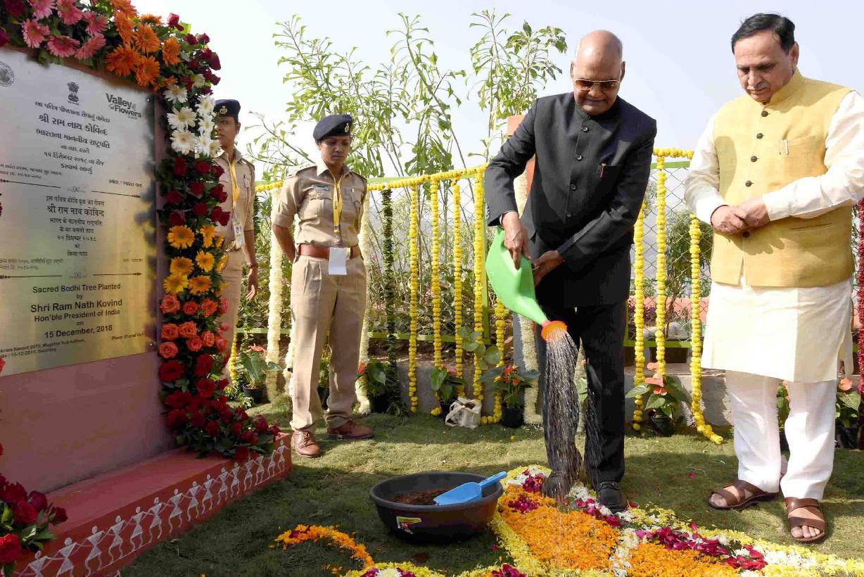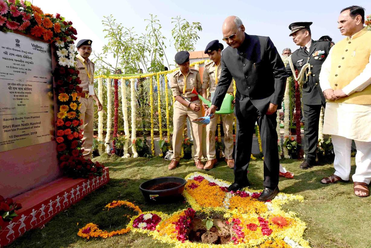 | Caption: | The President of India, Shri Ram Nath Kovind visiting the Valley of Flowers and planting a sapling at Bharat Van in remembrance Punya Tithi of Sardar Vallabhbhai Patel, at Kevadia in Narmada district of Gujarat on December 15, 2018. |