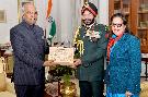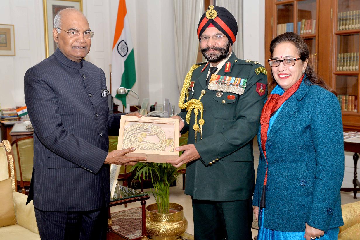 | Caption: | Lt. Gen. Amrik Singh, AVSM, SM, ADC Commandant, DSSC, Wellington along with his spouse Smt. Balvinder Kaur meeting with the President of India, Shri Ram Nath Kovind, at Rashtrapati Bhavan on December 17, 2018. |