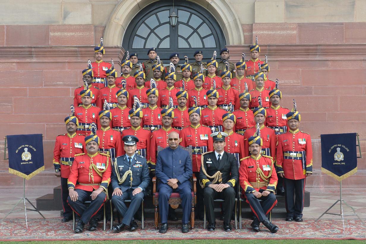 | Caption: | The President of India, Shri Ram Nath Kovind with the Military Band of the 2 ASC Training Centre (South), at Rashtrapati Bhavan on December 26, 2018. |