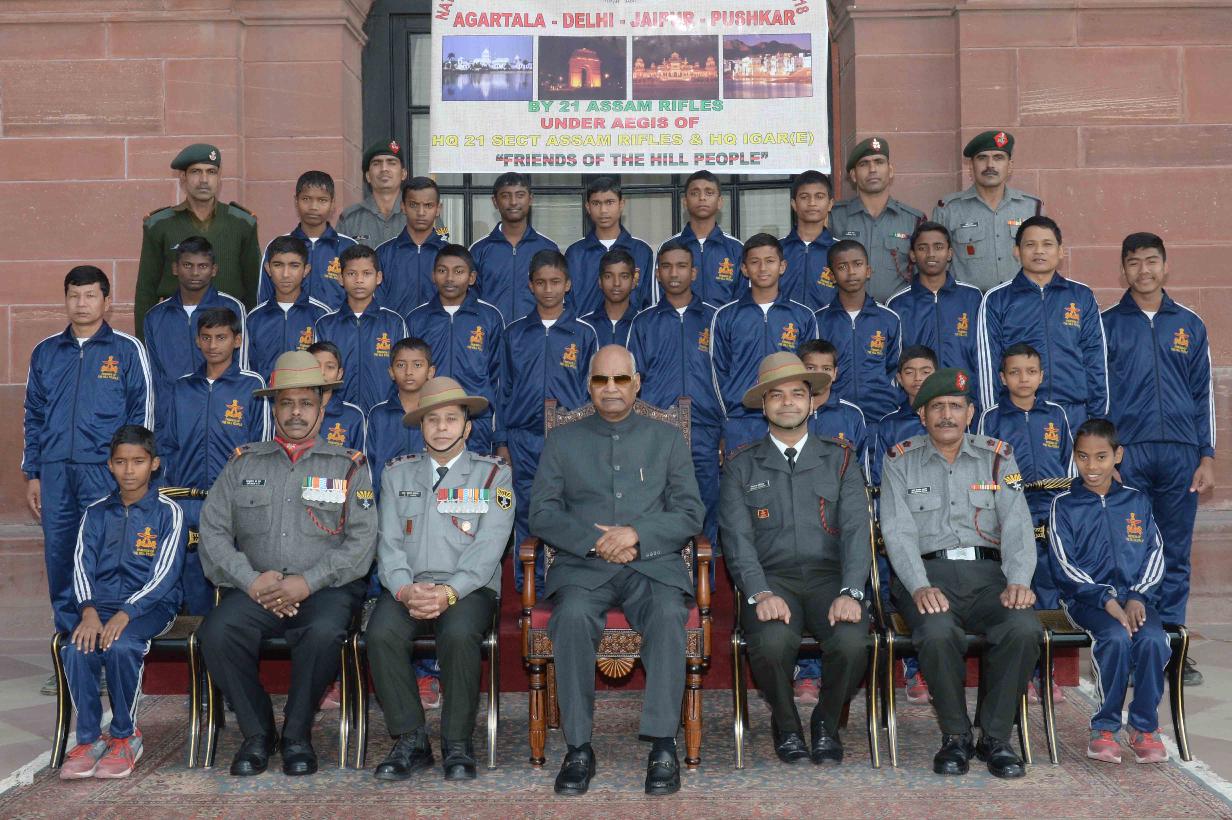 | Caption: | The President of India, Shri Ram Nath Kovind meeting with the students from Agartala (Tripura) attending the National Integration Tour, organised by 21 Assam Rifles, at Rashtrapati Bhavan on December 19, 2018. |
