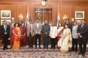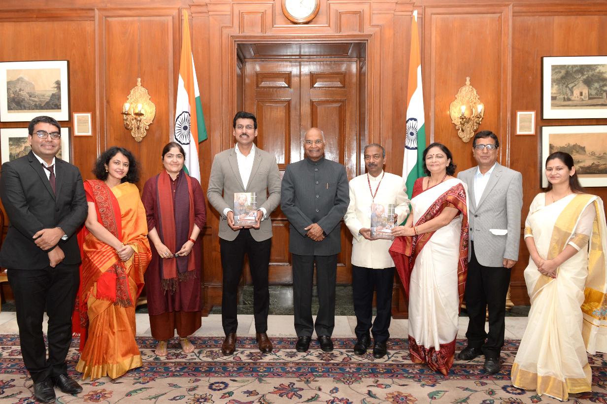 | Caption: | The Minister of State (I/C) for Information & Broadcasting, Col. Rajyavardhan Singh Rathore along with the Secretary, Ministry of Information and Broadcasting, Shri Amit Khare and officials from Publications Division meeting with the President of India, Shri Ram Nath Kovind, at Rashtrapati Bhavan on December 08, 2018. |
