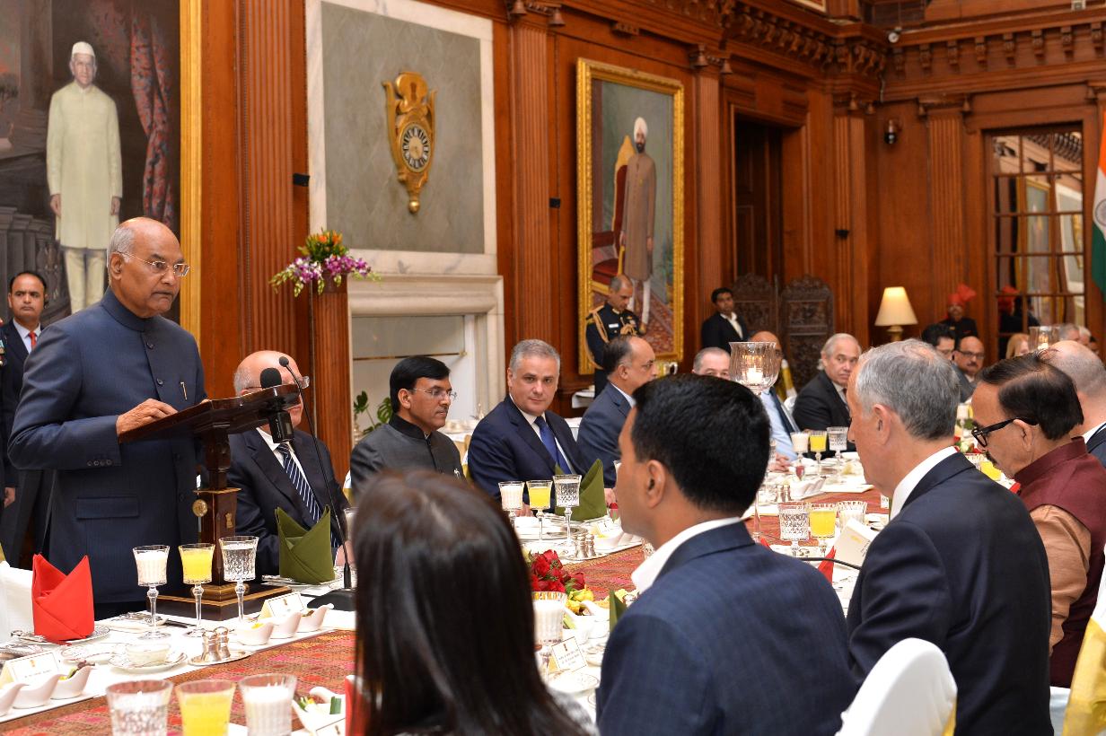 | Caption: | The President of India, Shri Ram Nath Kovind hosting a banquet in honour of the President of the Portuguese Republic, H.E. Mr. Marcelo Rebelo de Sousa, at Rashtrapati Bhavan on February 14, 2020. |
