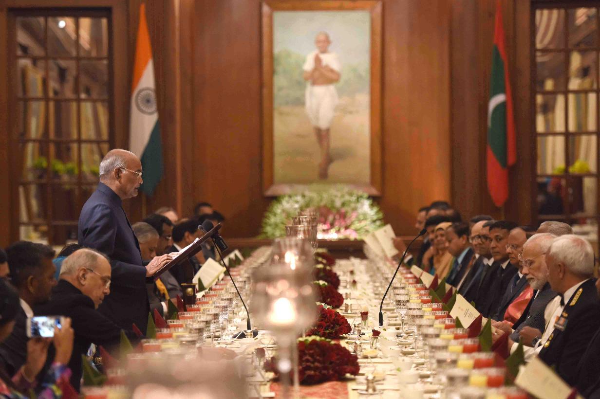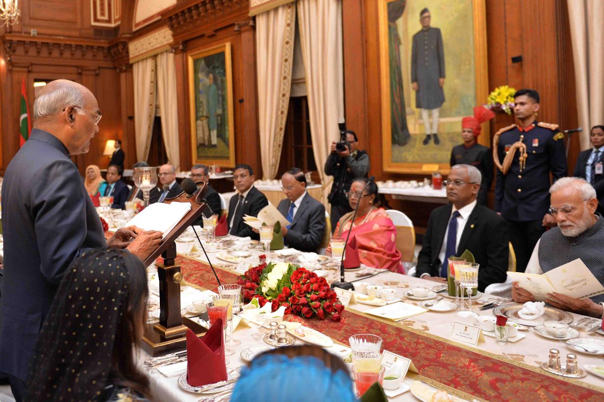| Caption: | The President of India, Shri Ram Nath Kovind hosting Banquet in honour of the President of the Republic of Maldives, H.E. Mr. Ibrahim Mohamed Solih, at Rashtrapati Bhavan on December 17, 2018. |
