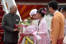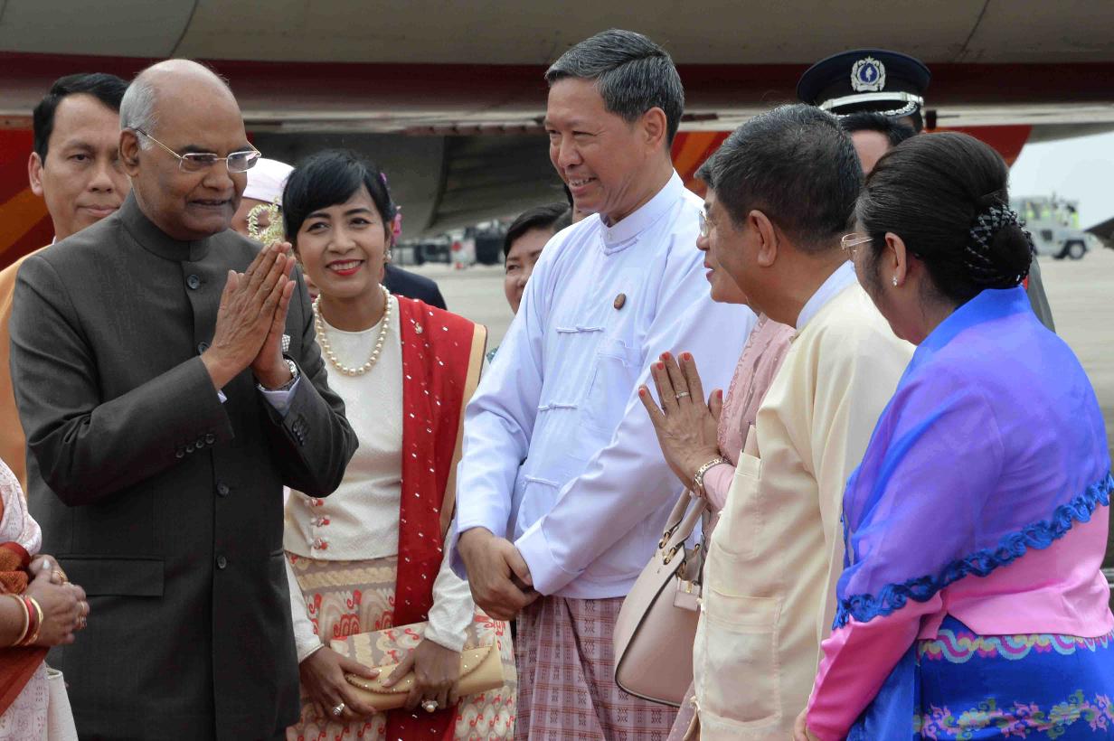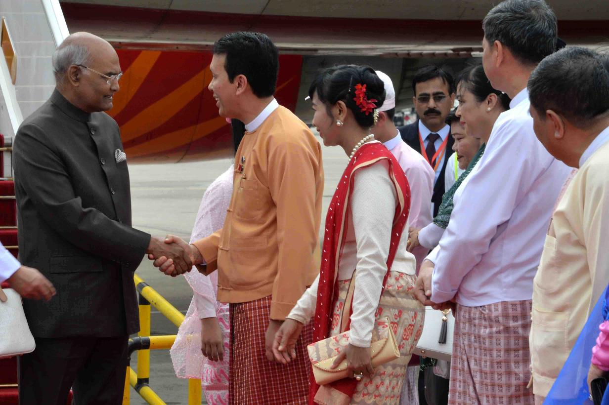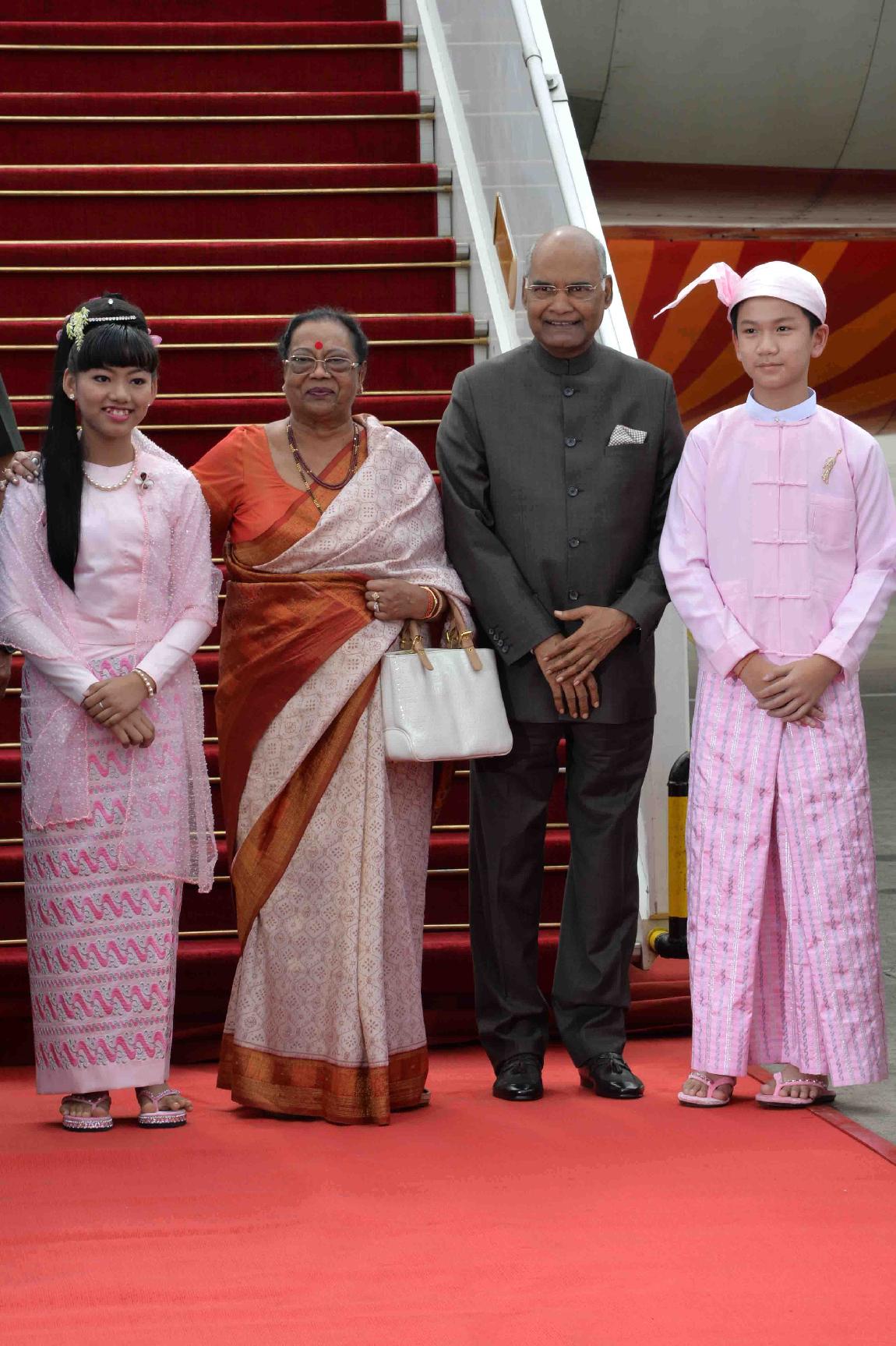 | Caption: | The President of India, Shri Ram Nath Kovind and the First Lady, Smt. Savita Kovind being received, on their arrival, at Yangon International Airport, in Myanmar on December 12, 2018. |