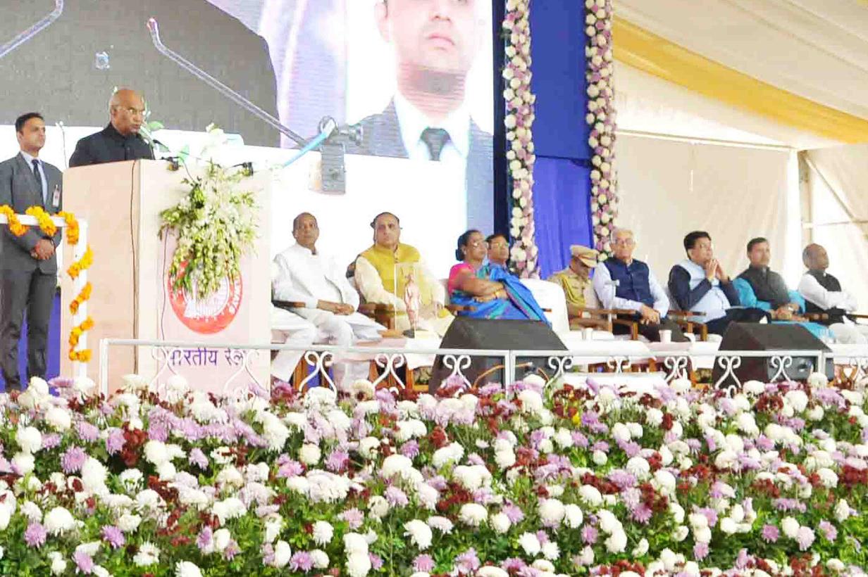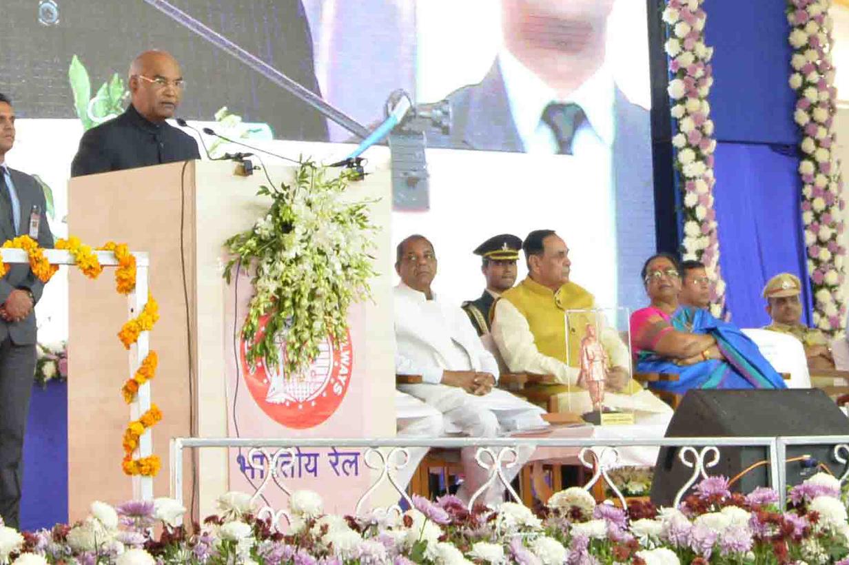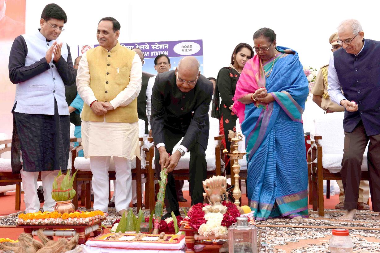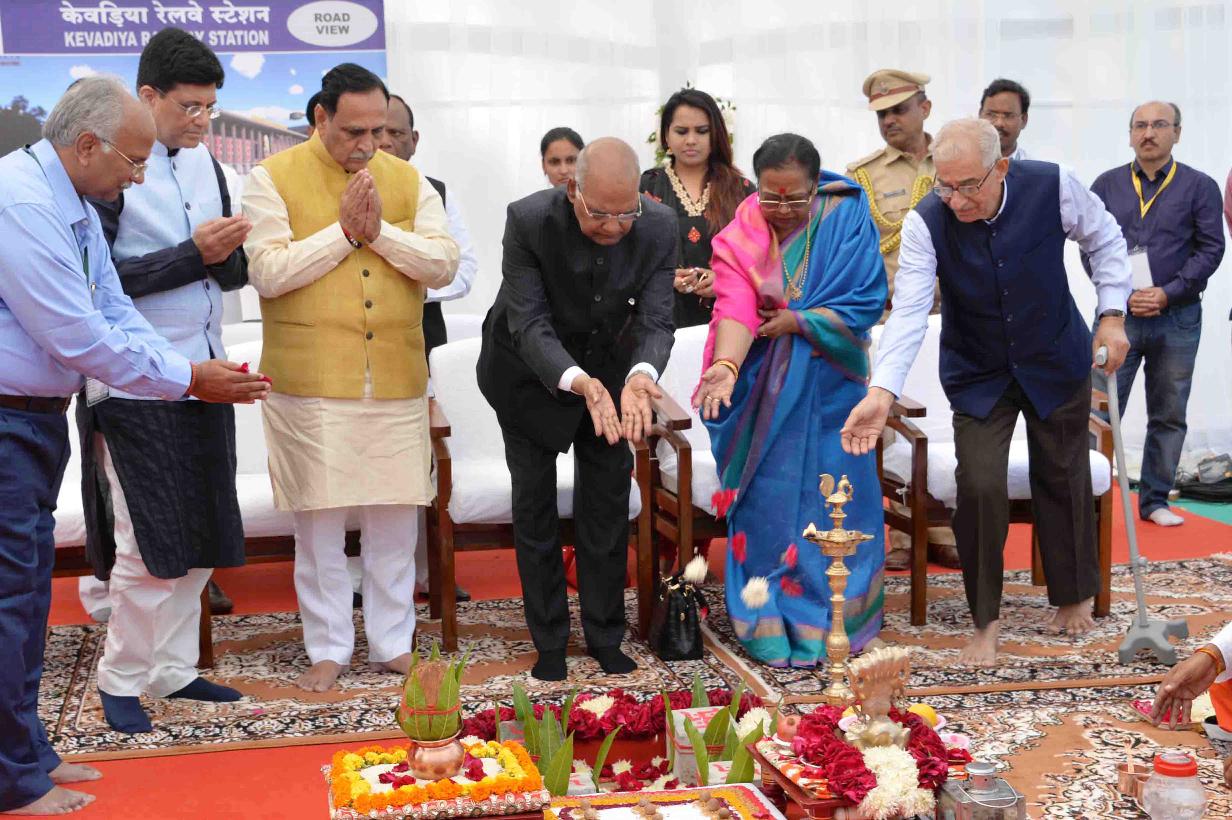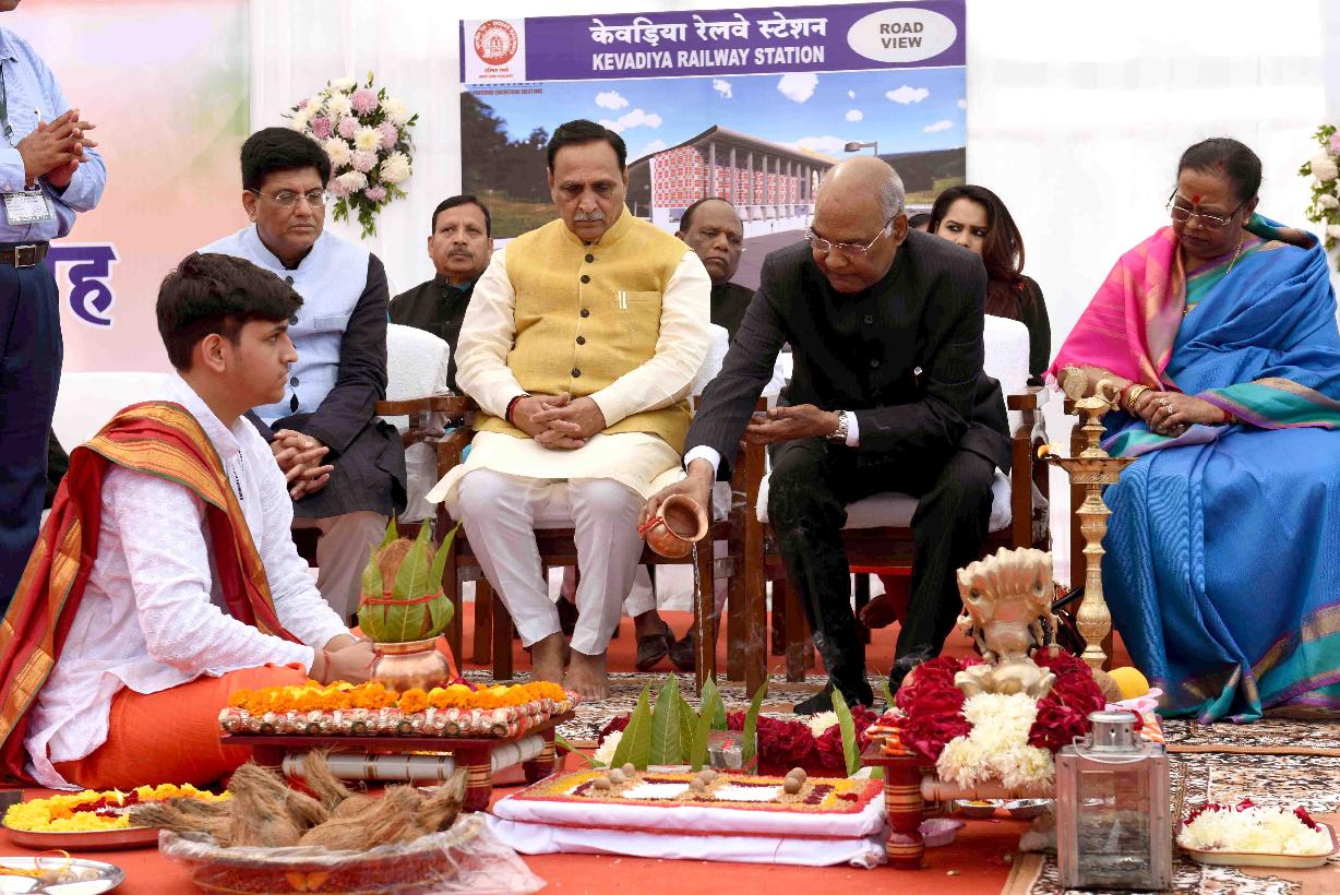 | Caption: | The President of India, Shri Ram Nath Kovind laying the foundation stone for Kevadia Railway Station, in Narmada district of Gujarat on December 15, 2018. |