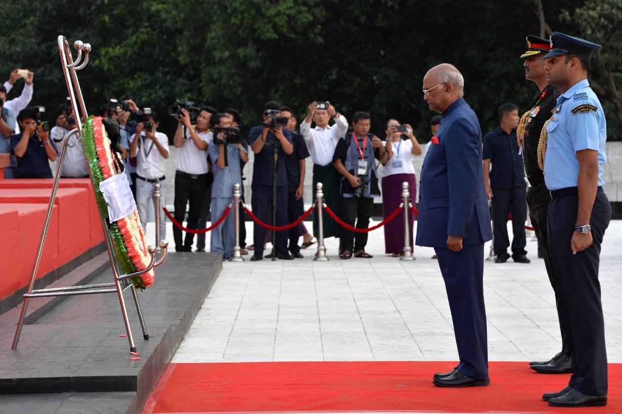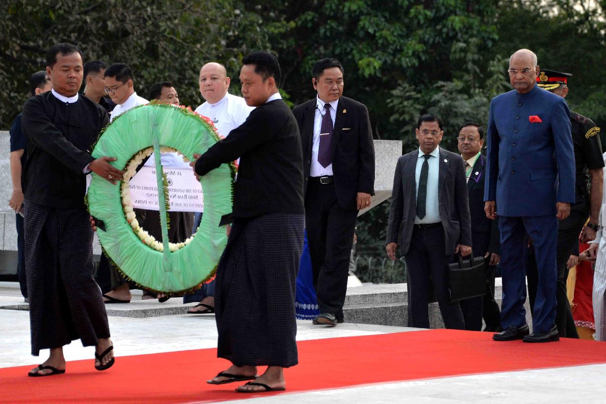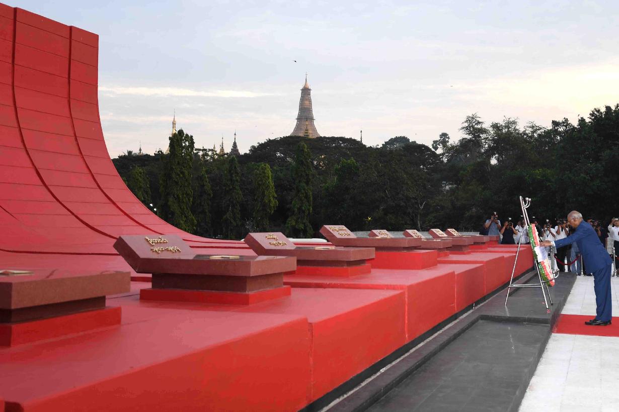 | Caption: | The President of India, Shri Ram Nath Kovind laying wreath at Martyrs' Mausoleum, at Yangon, in Myanmar on December 12, 2018. |