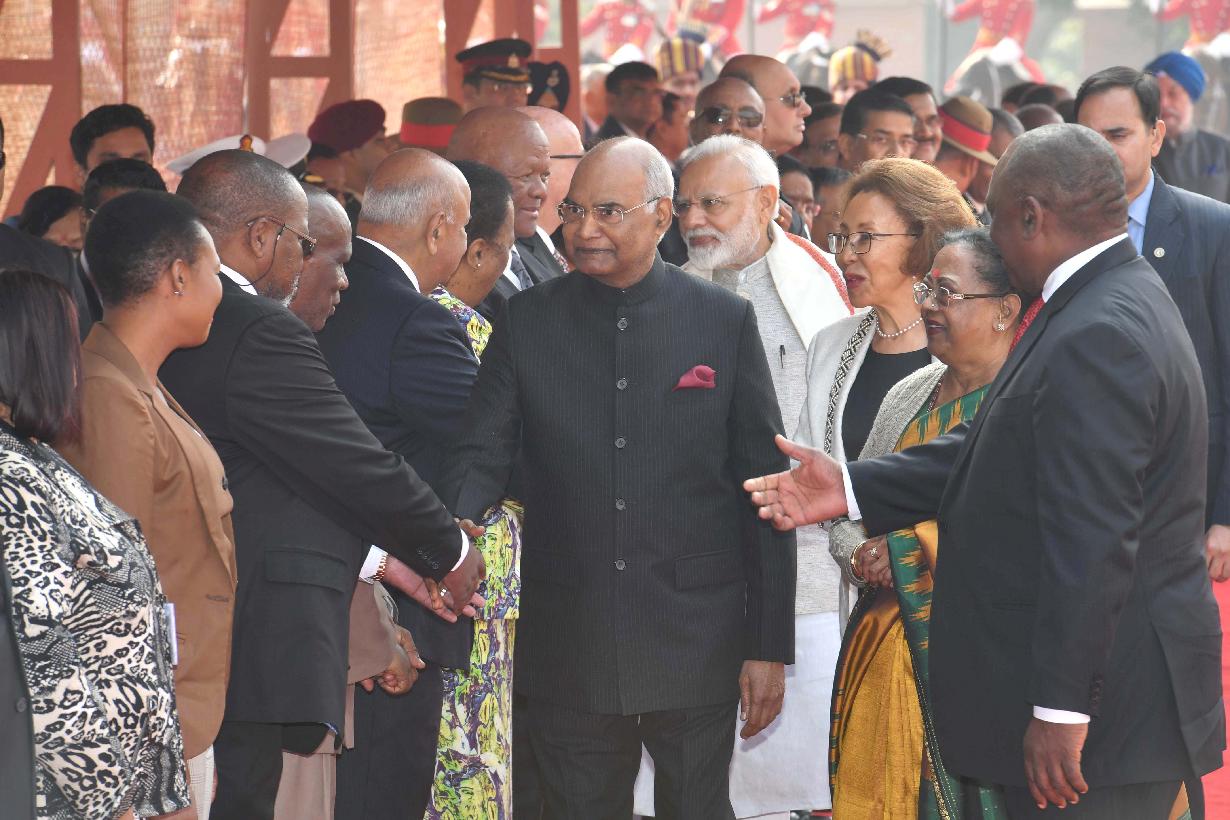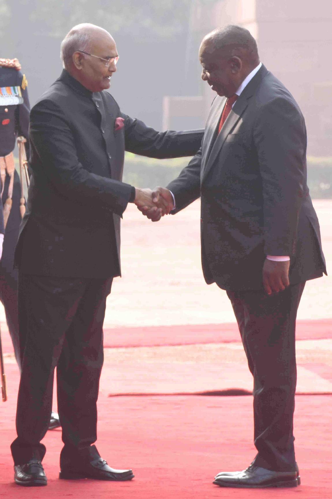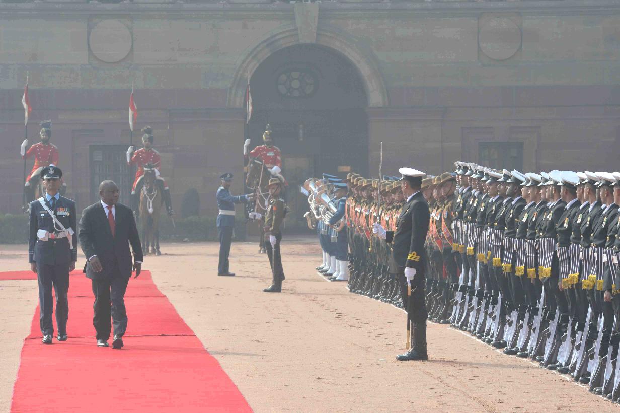 | Caption: | The President of India, Shri Ram Nath Kovind accords a ceremonial welcome to the President of the Republic of South Africa, H.E. Mr. Matamela Cyril Ramaphosa, at Rashtrapati Bhavan on January 25, 2019. |