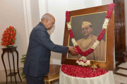 | Caption: | The President of India, Shri Ram Nath Kovind paying floral tributes at the portrait of Netaji Subhash Chandra Bose on his birth anniversary, at Rashtrapati Bhavan on January 23, 2019. |