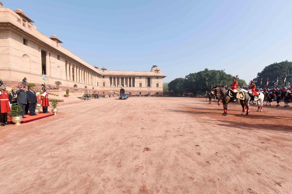 | Caption: | The President of India, Shri Ram Nath Kovind receiving National Salute from President's Body Guard at Forecourt of Rashtrapati Bhavan before leaving for Rajpath to witness the Republic Day Parade on January 26, 2019. |