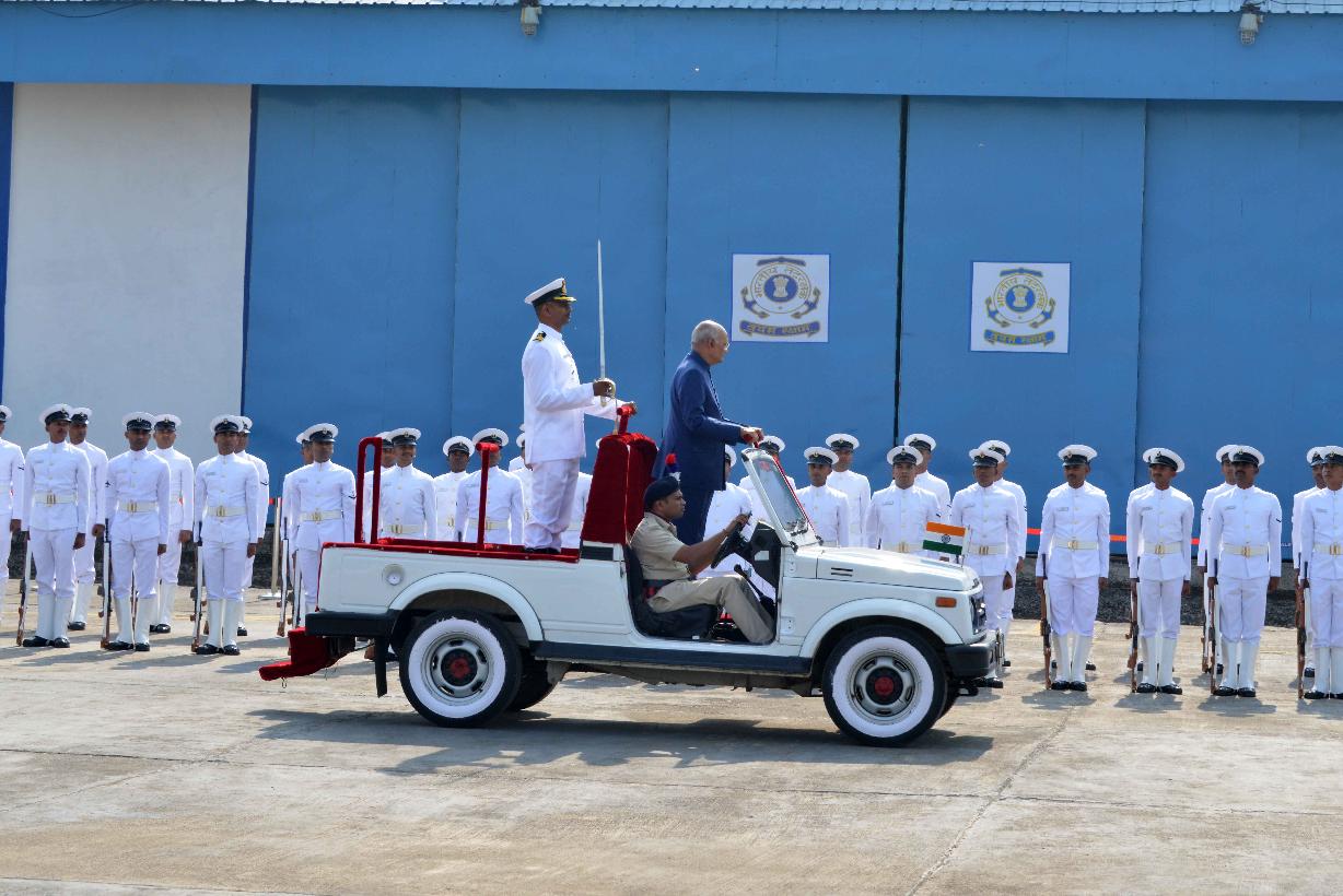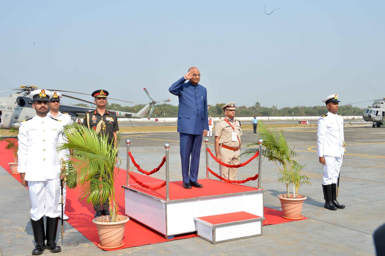 | Caption: | The President of India, Shri Ram Nath Kovind inspecting the Guard of Honour on his arrival at Cost Guard Air Station, in Daman on February 17, 2020. |
