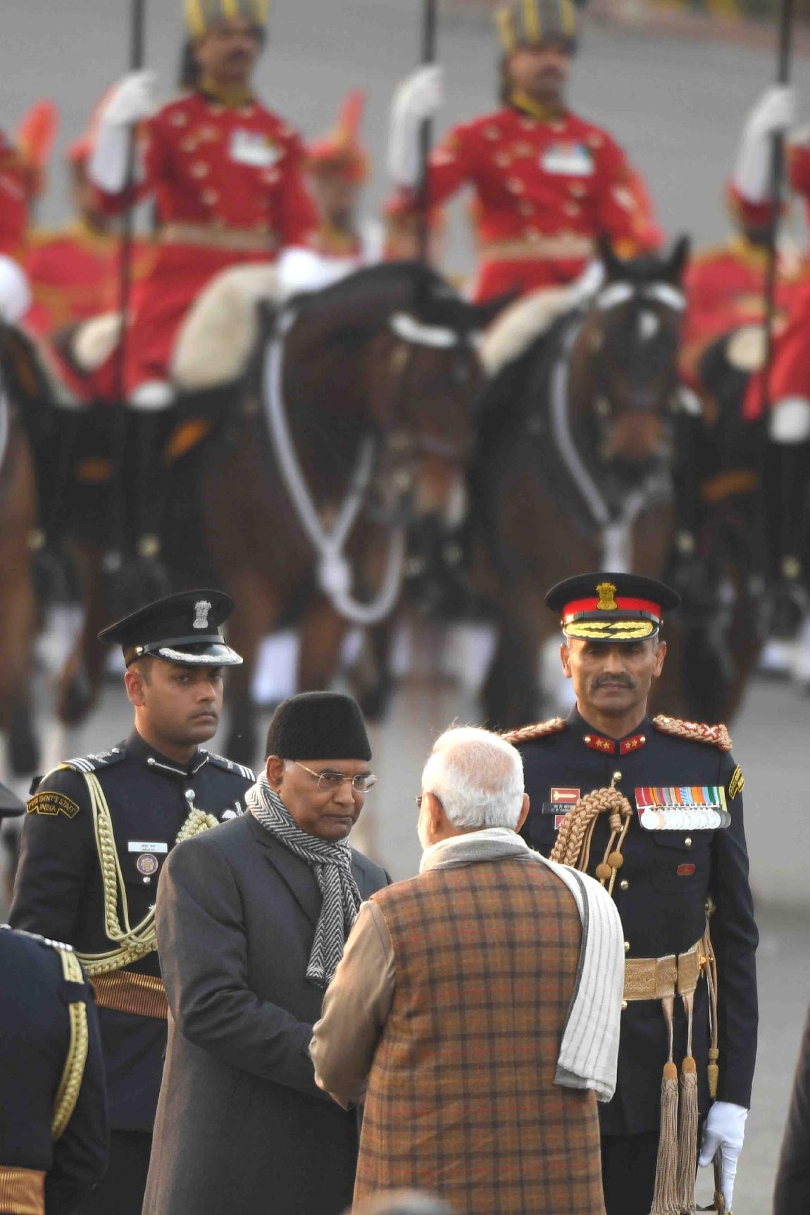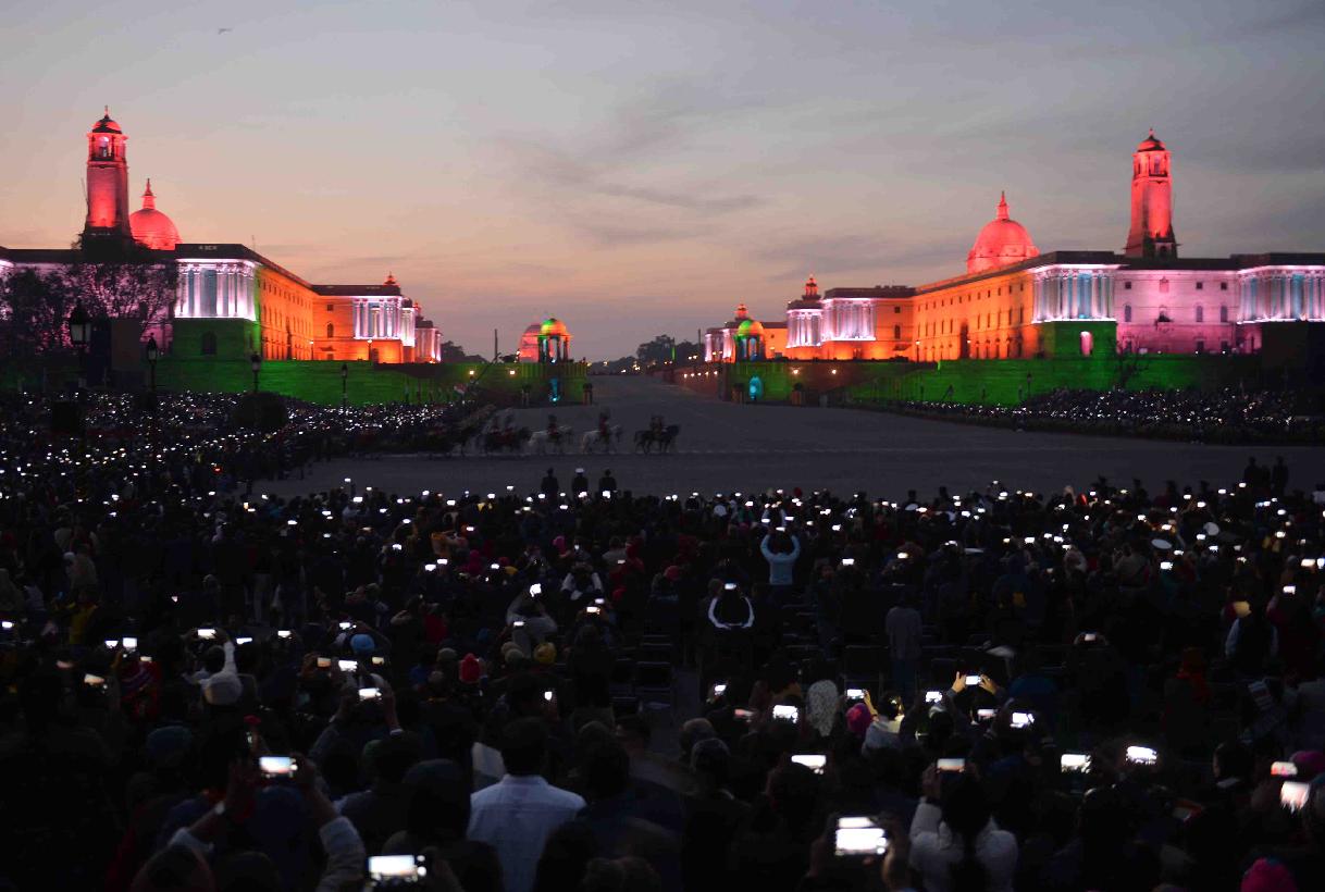 | Caption: | The President of India, Shri Ram Nath Kovind witnessing the Beating Retreat , at Vijay Chowk, in New Delhi on January 29, 2019. |