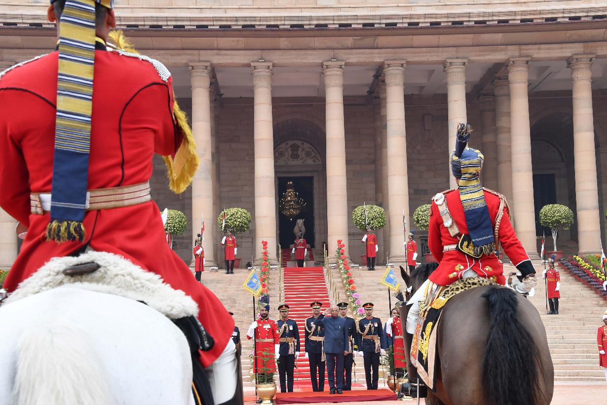 | Caption: | The President of India, Shri Ram Nath Kovind receiving National Salute from President's Body Guard at the Forecourt of Rashtrapati Bhavan before leaving for Parliament House to address the Joint Sitting of Two Houses of Parliament, in New Delhi on January 31, 2019. |