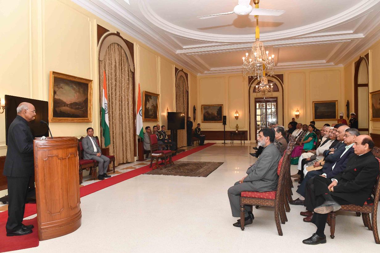| Caption: | Dr. Mahesh Chandra Sharma, Chairman, Research & Development Foundation for Integral Humanism with others meeting with the President of India, Shri Ram Nath Kovind, at Rashtrapati Bhavan on February 11, 2019. |