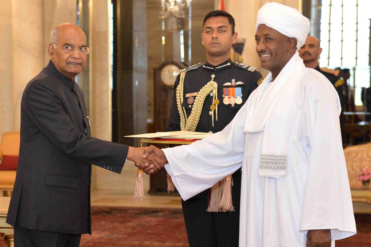 | Caption: | The Ambassador-designate of the Republic of Sudan, H.E. Mr. Ahmed Yousif Mohamed Elsiddig presenting his credentials to the President of India, Shri Ram Nath Kovind, at Rashtrapati Bhavan on February 08, 2019. |
