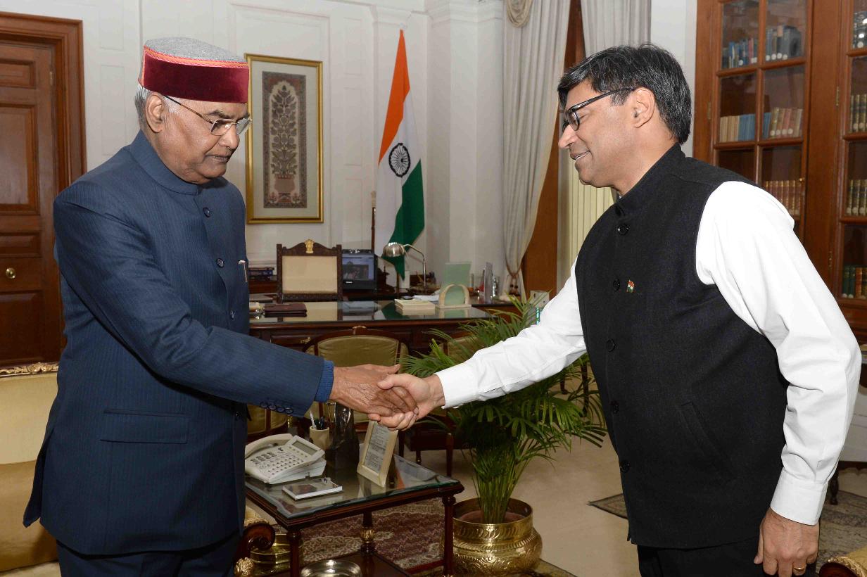 | Caption: | The Ambassador-designate of India to People's Republic of China, Shri Vikram Misri meeting with the President of India, Shri Ram Nath Kovind, at Rashtrapati Bhavan on January 01, 2019. |