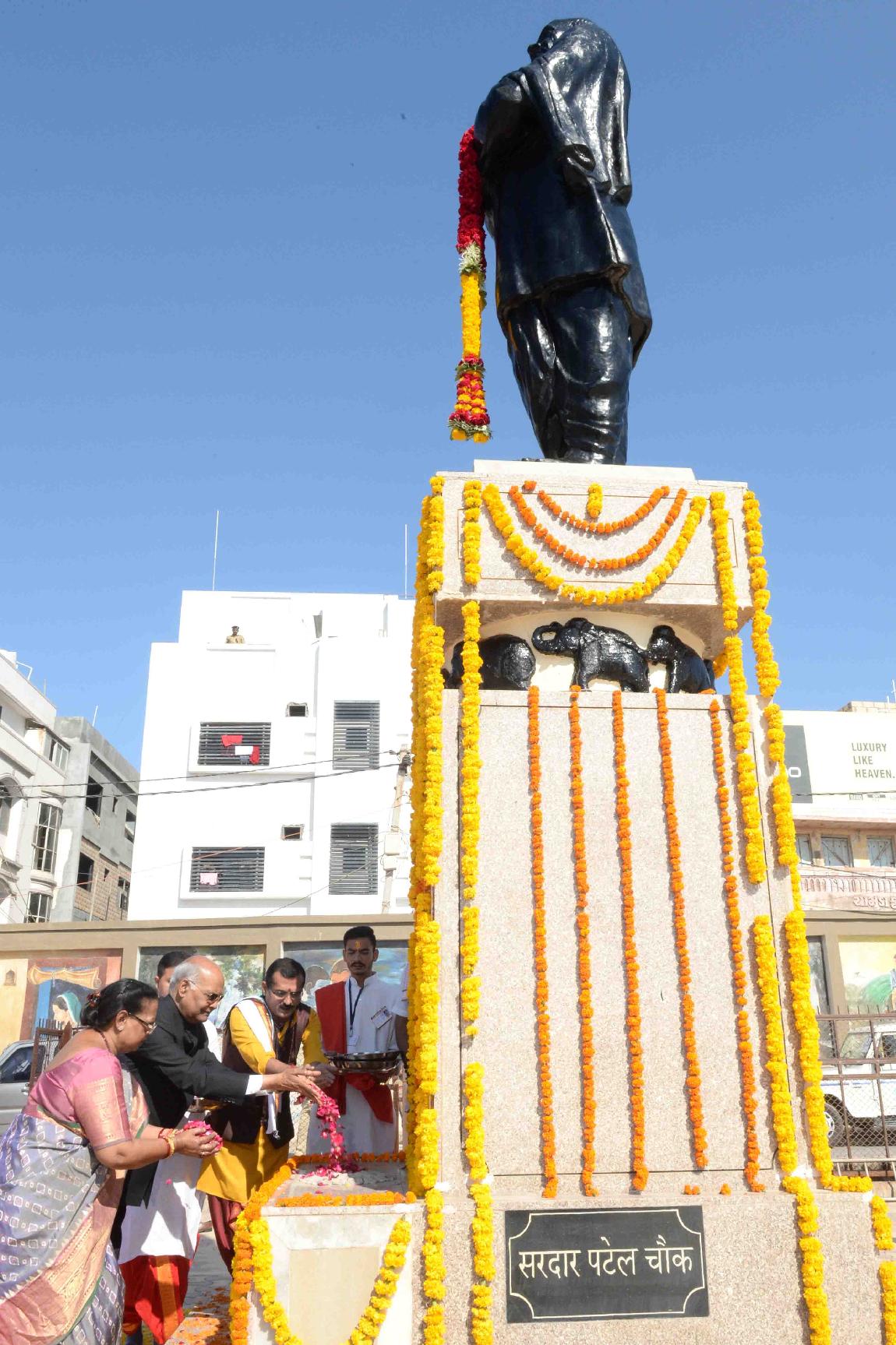 | Caption: | The President of India, Shri Ram Nath Kovind paying floral tributes at the statue of Sardar Vallabhabhai Patel, at Somnath, in Gujarat on December 31, 2018. |