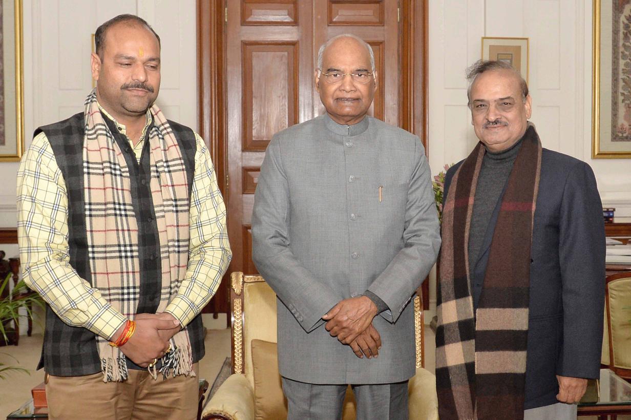 | Caption: | Shri Om Prakash Sharma, MLA, Delhi alongwith Shri Rajat Kumar meeting with the President of India, Shri Ram Nath Kovind, at Rashtrapati Bhavan on January 15, 2019. |