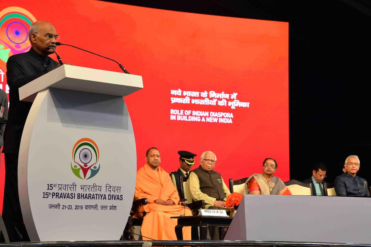 | Caption: | The President of India, Shri Ram Nath Kovind presenting the Pravasi Bharatiya Samman Awards, at the closing session of the 15th Pravasi Bharatiya Divas Convention, at Varanasi, in Uttar Pradesh on January 23, 2019. |
