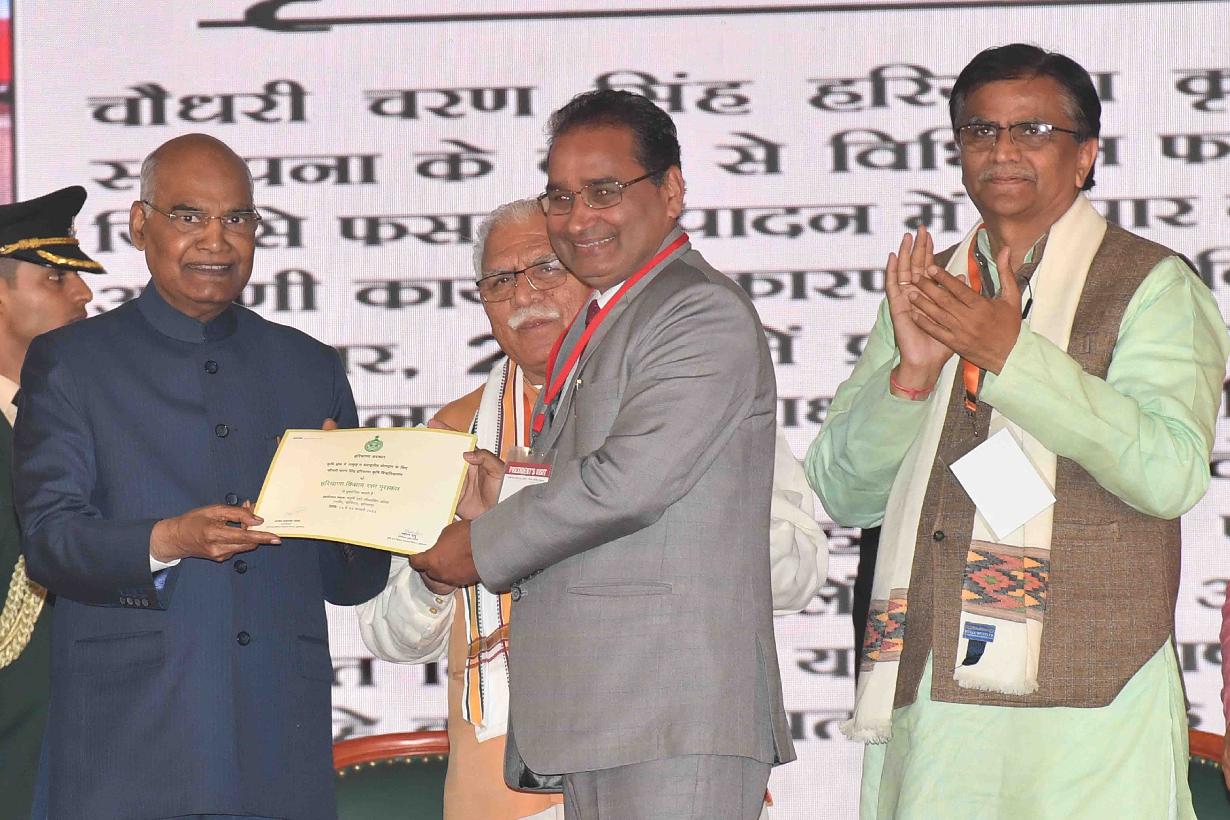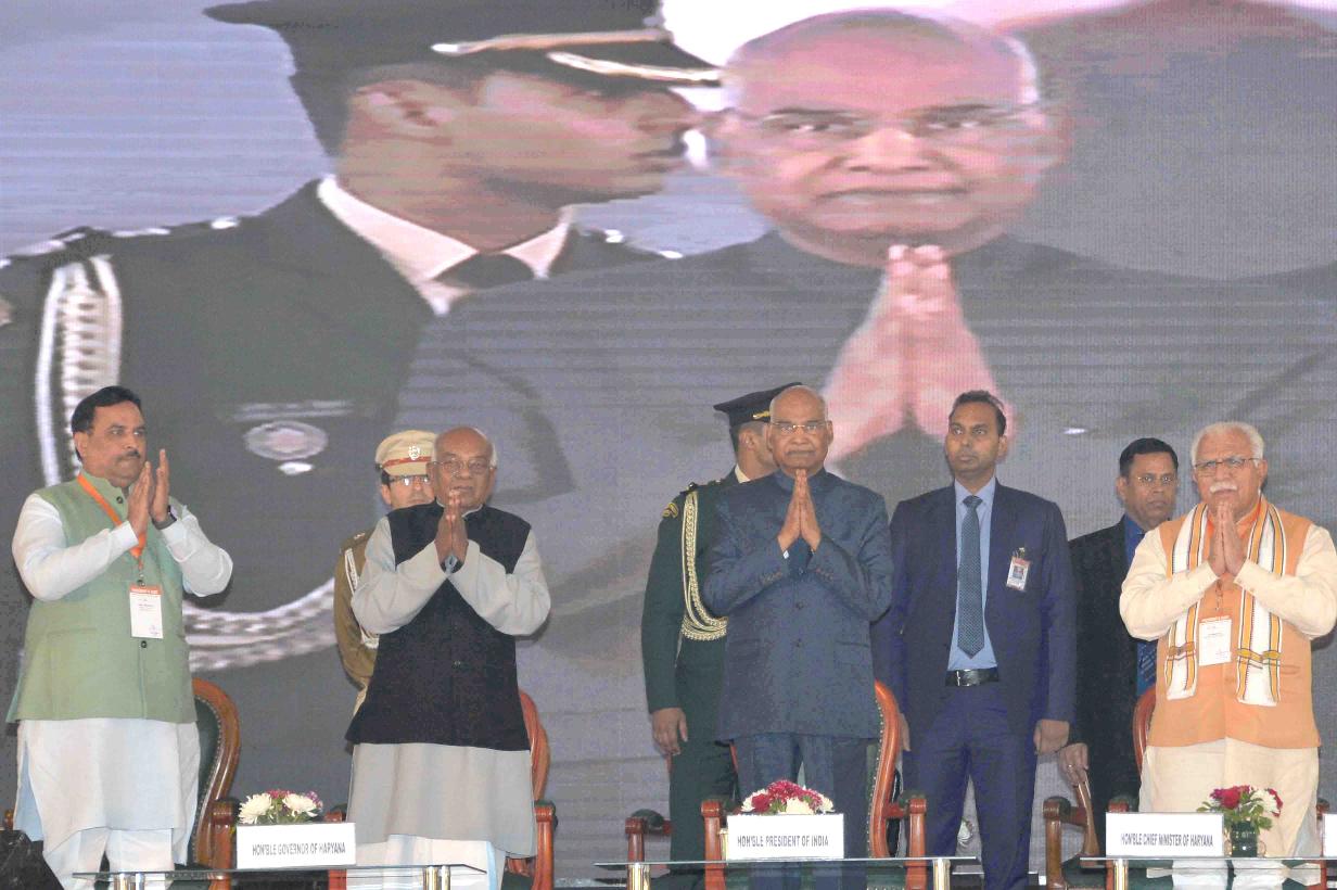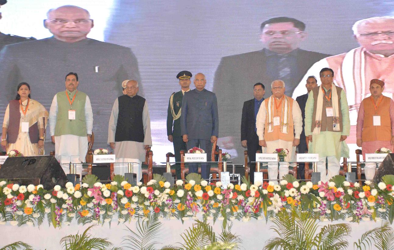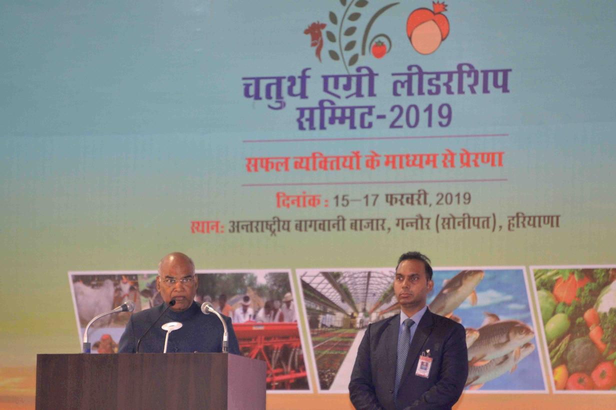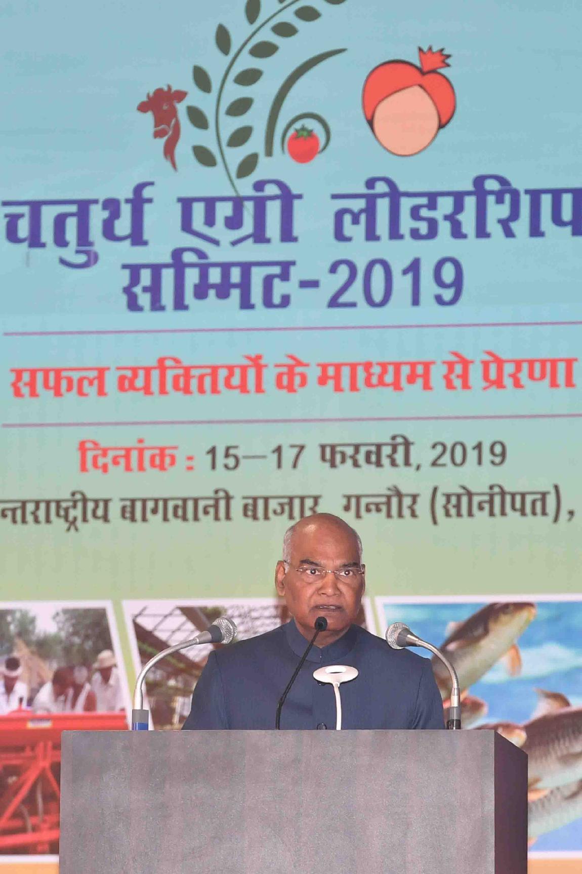 | Caption: | The President of India, Shri Ram Nath Kovind gracing the closing ceremony of the Fourth Agri Leadership Summit organised by the government of Haryana and presenting the Haryana Kisaan Ratna Puraskaar and the Haryana Krishi Ratna Puraskaar, at Ganaur, Sonipat, in Haryana on February 17, 2019. |