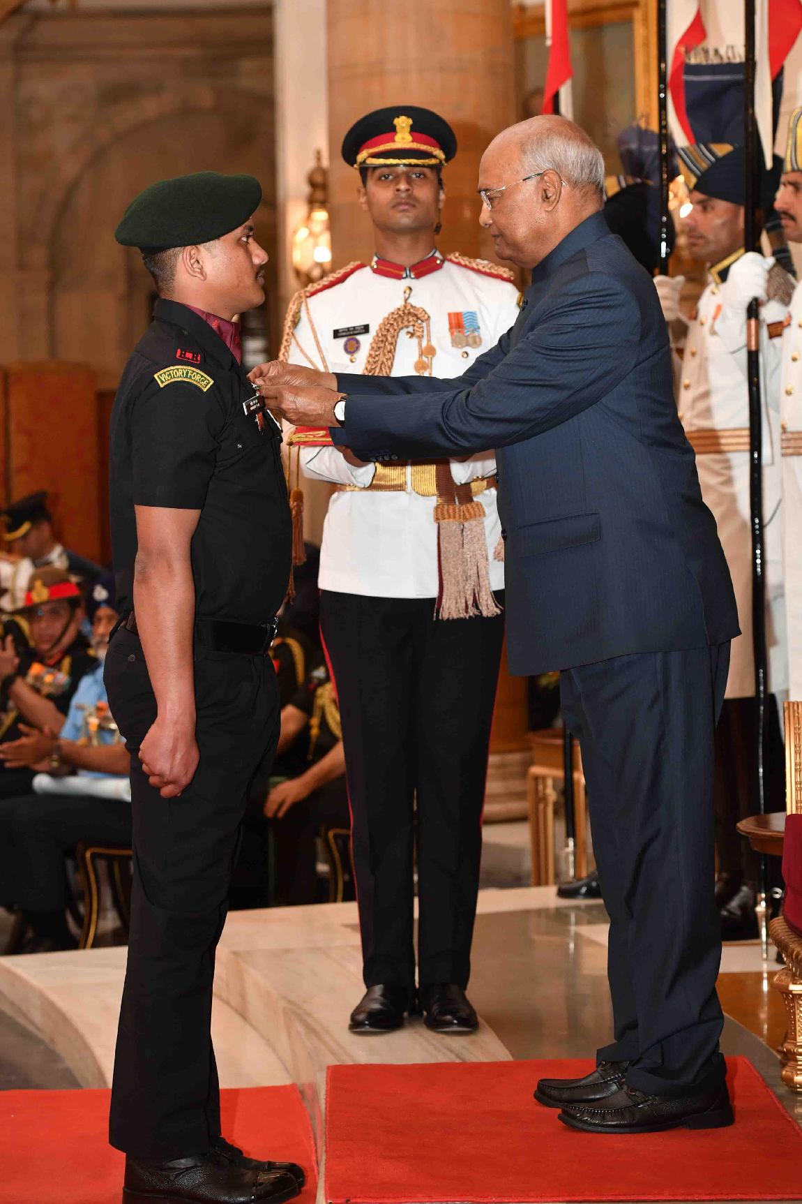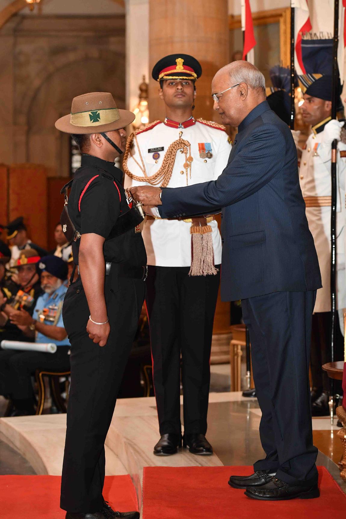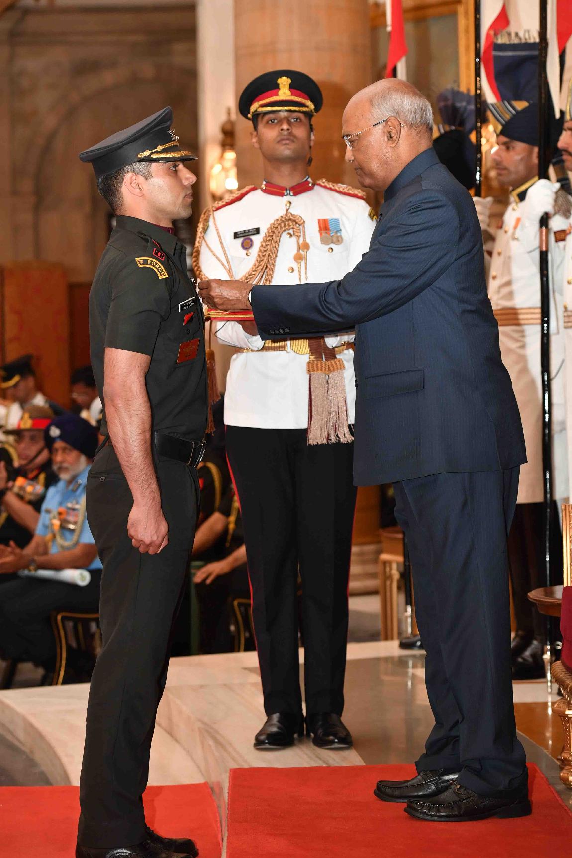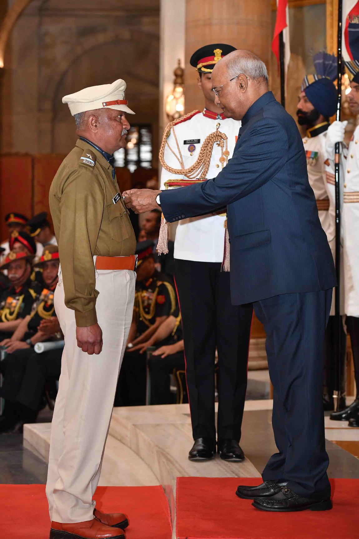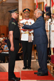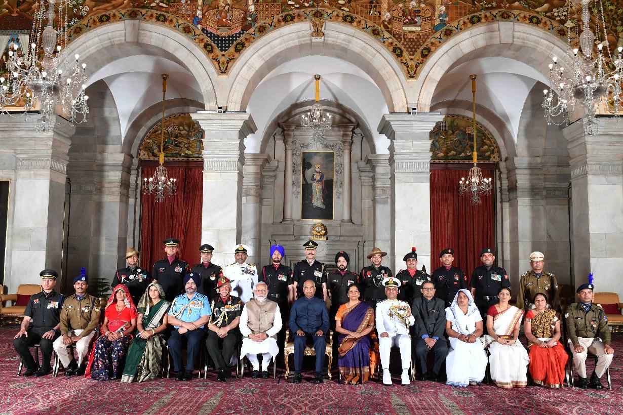 | Caption: | The President of India, Shri Ram Nath Kovind presenting the Gallantry Awards and Distinguished Service Decorations, at the Defence Investiture Ceremony, at Rashtrapati Bhavan on March 14, 2019. |