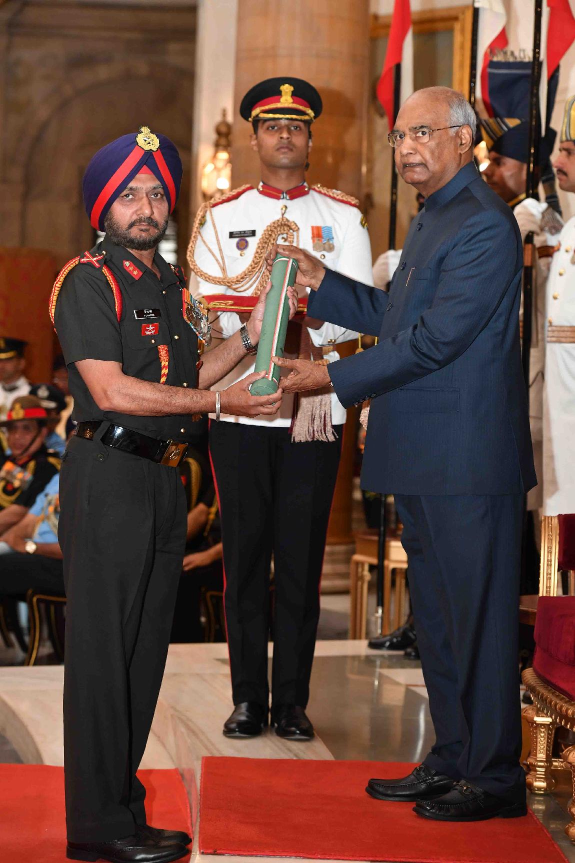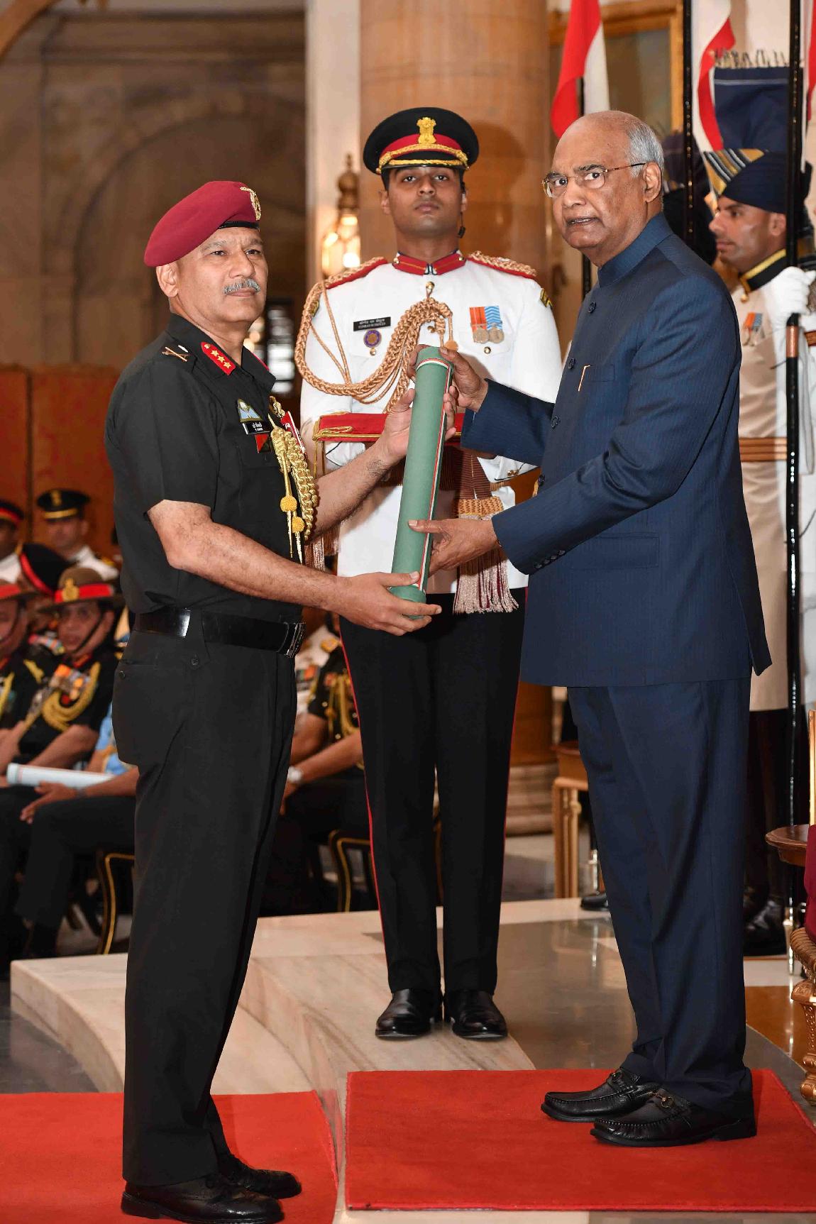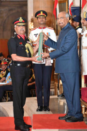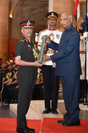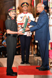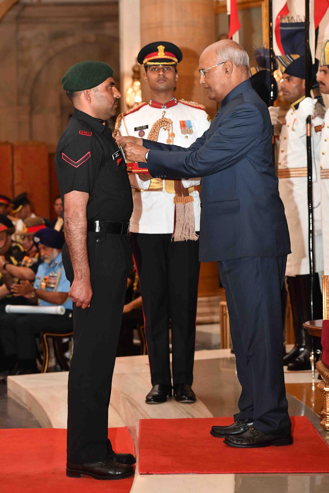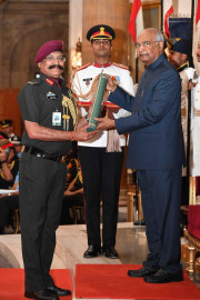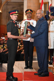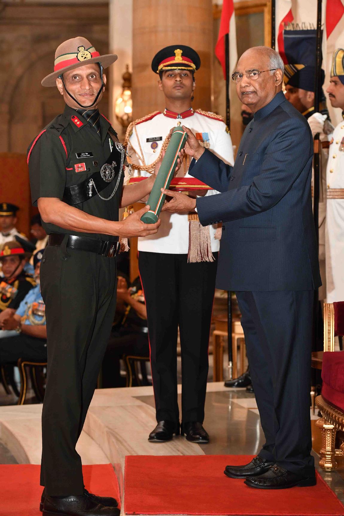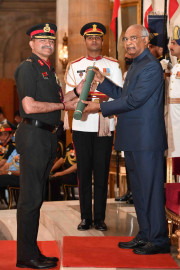 | Caption: | The President of India, Shri Ram Nath Kovind presenting the Gallantry Awards and Distinguished Service Decorations, at the Defence Investiture Ceremony, at Rashtrapati Bhavan on March 14, 2019. |