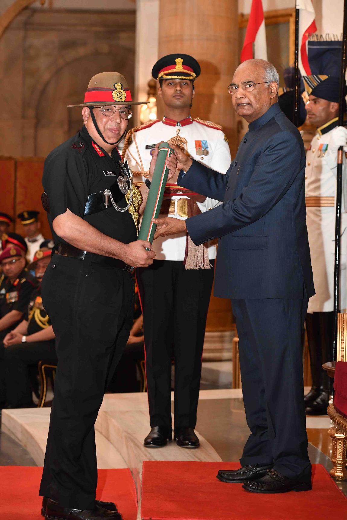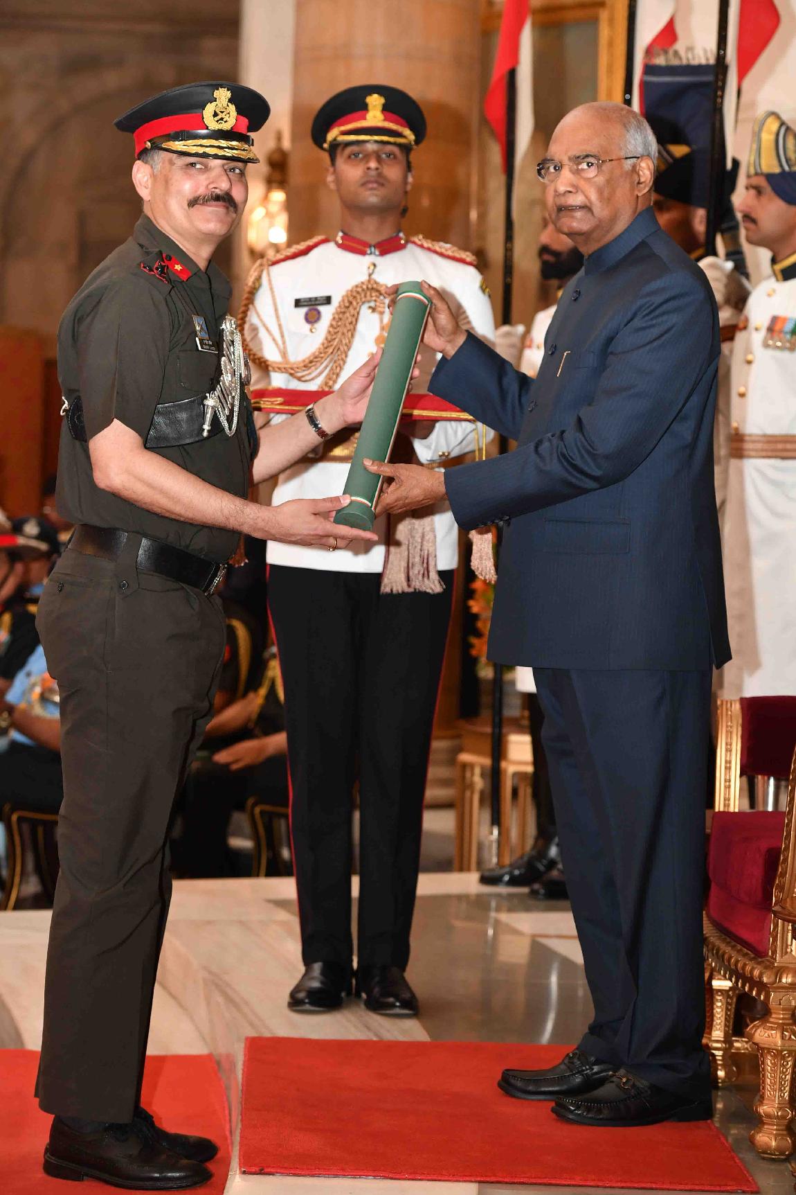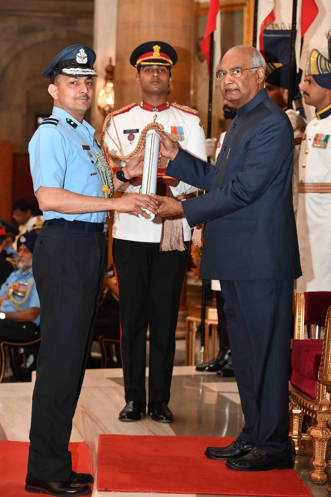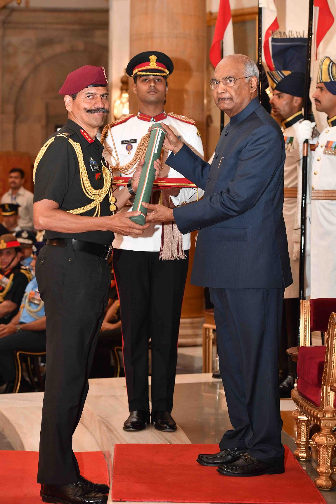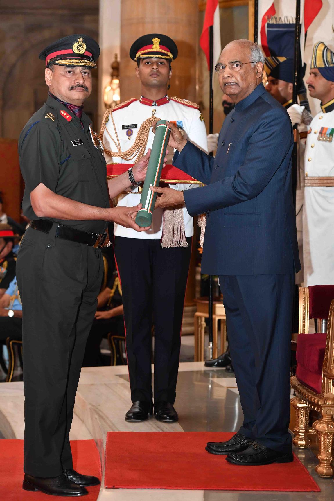 | Caption: | The President of India, Shri Ram Nath Kovind presenting the Gallantry Awards and Distinguished Service Decorations, at the Defence Investiture Ceremony, at Rashtrapati Bhavan on March 14, 2019. |