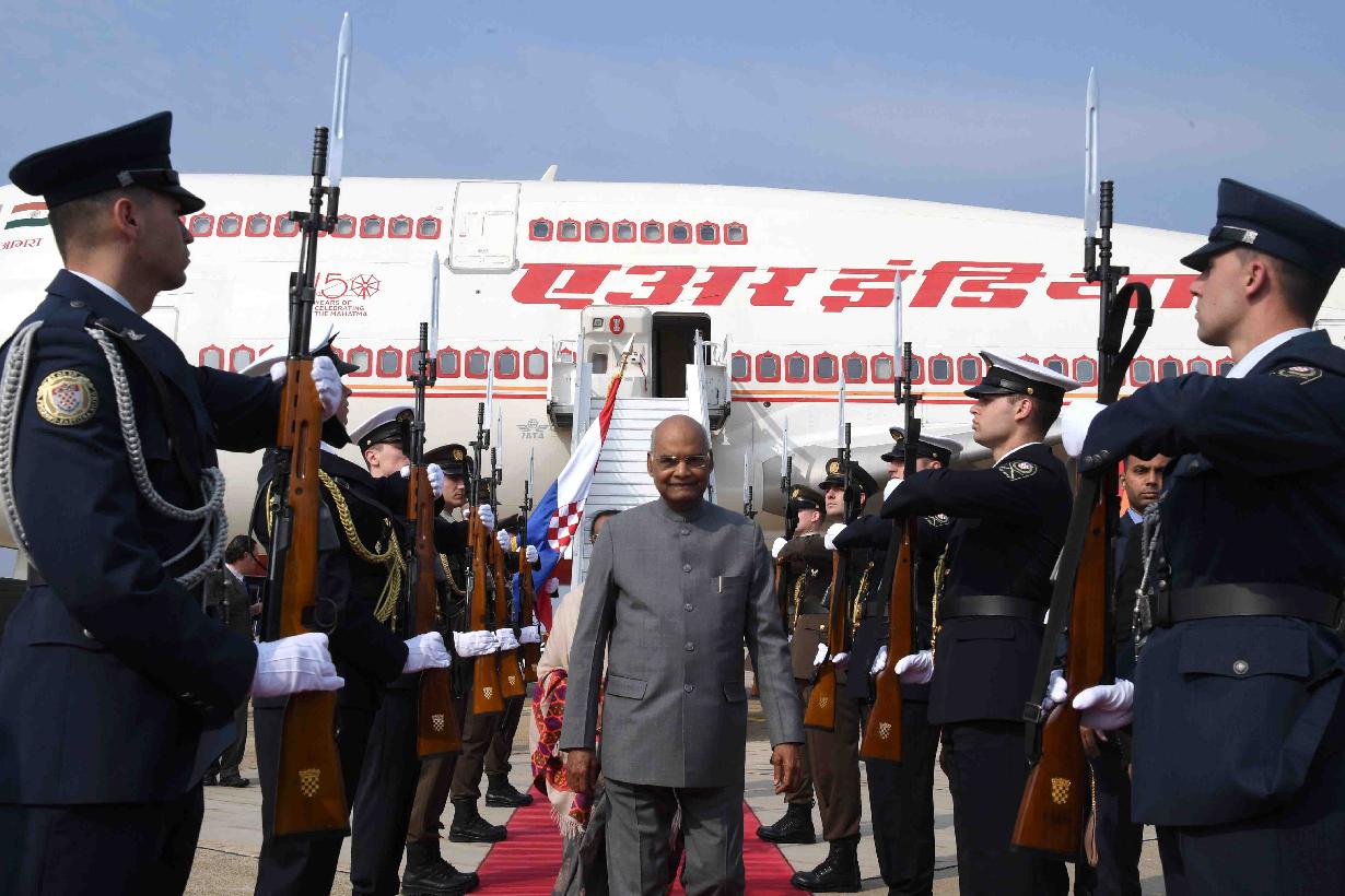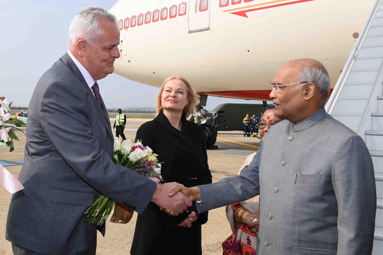 | Caption: | The President of India, Shri Ram Nath Kovind being welcomed on his arrival at Franjo Tudman International Airport, Zagreb, in Croatia on March 25, 2019. |
