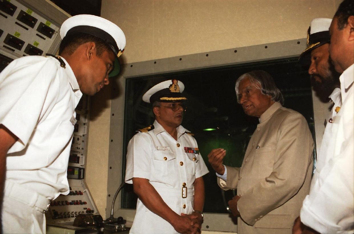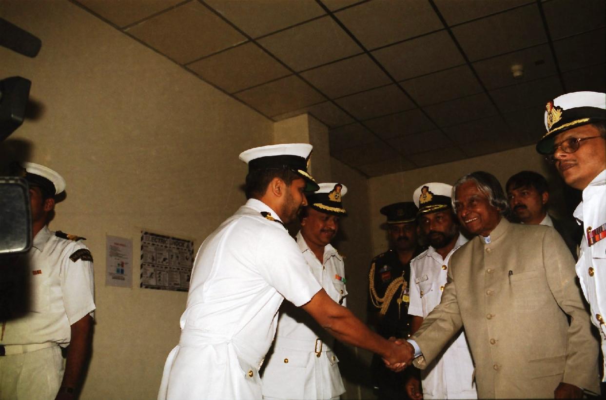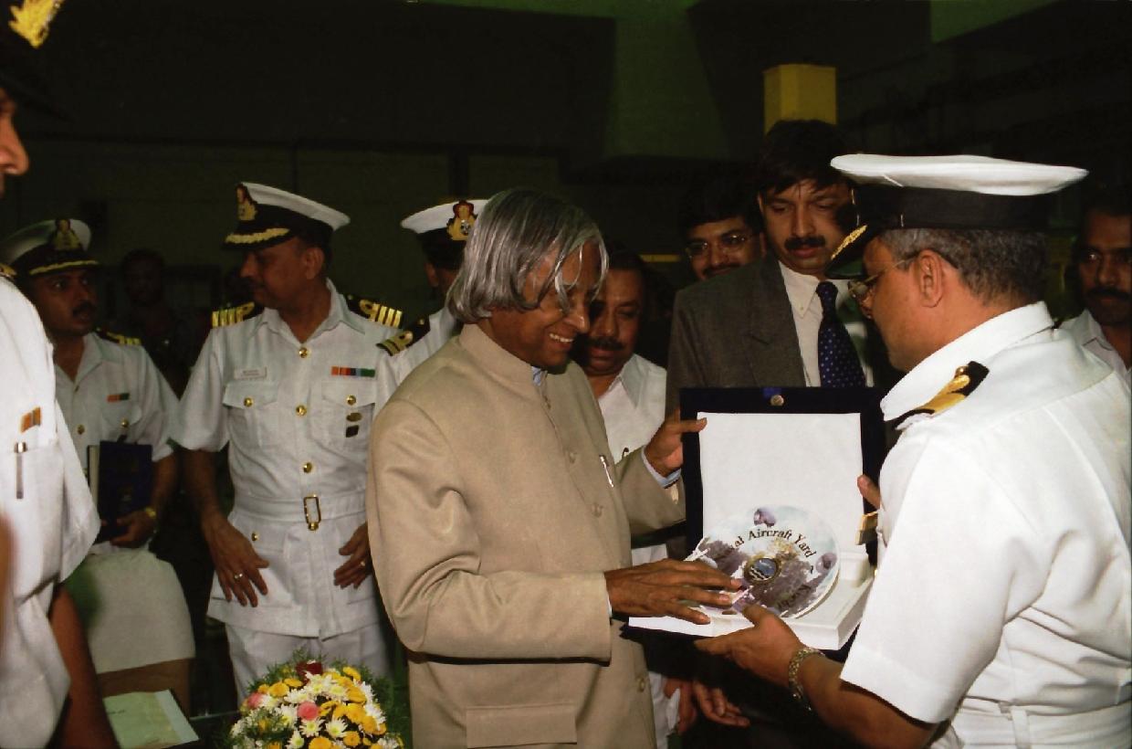 | Caption: | The President of India, Dr A P J Abdul Kalam visiting the Southern Naval Command at Kochi in Kerala on Nov 17, 2002 |