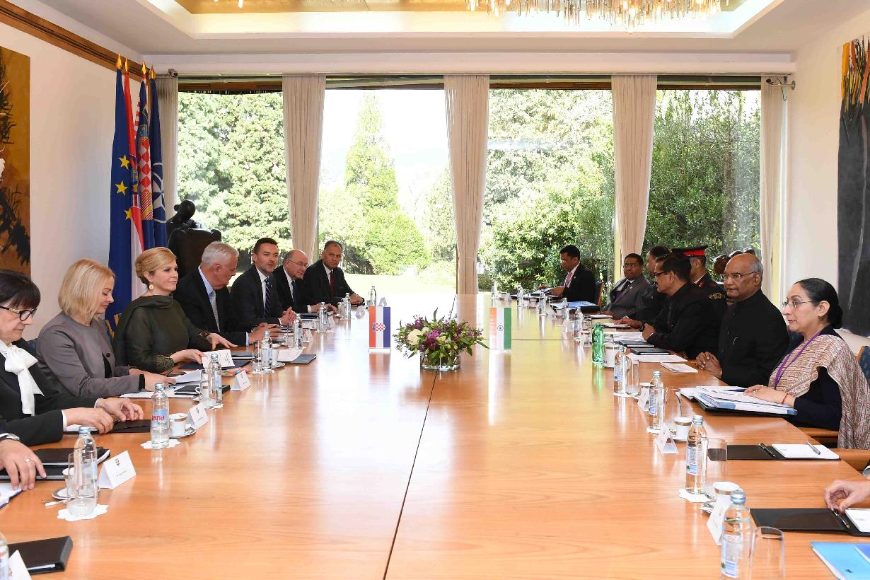 | Caption: | The President of India, Shri Ram Nath Kovind holding delegation level talks with the President of Croatia, Mrs. Kolinda Grabar-Kitarovic, at the Office of the President, Zagreb, in Croatia on March 26, 2019. |