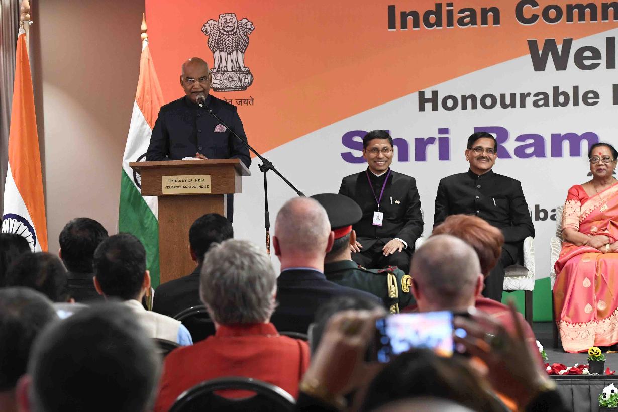 | Caption: | The President of India, Shri Ram Nath Kovind addressing the Indian Community at a Reception, at Hotel The Westin, Zagreb, in Croatia on March 26, 2019. |