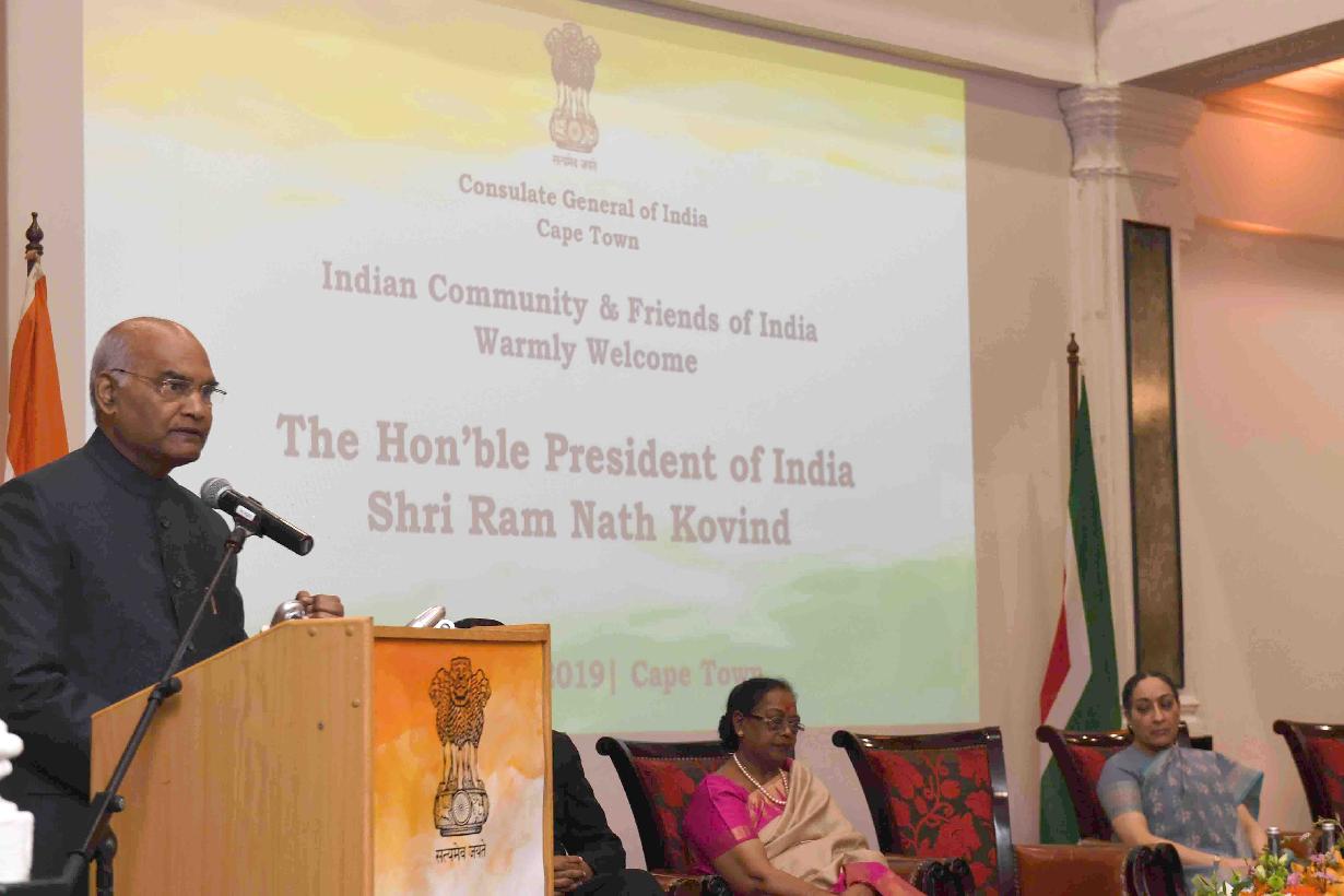 | Caption: | The President of India, Shri Ram Nath Kovind addressing the Indian Community at a Reception, at Cape Town, in the Republic of South Africa on April 02, 2019. |