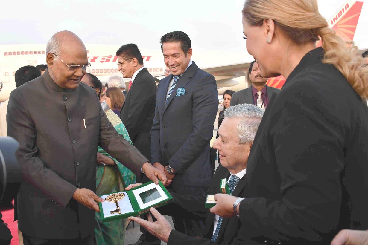 | Caption: | The President of India, Shri Ram Nath Kovind receiving the "Key of the City of Santa Cruz", at Viru Viru International Airport, Santa Cruz de la Sierra, in Bolivia on March 28, 2019. |