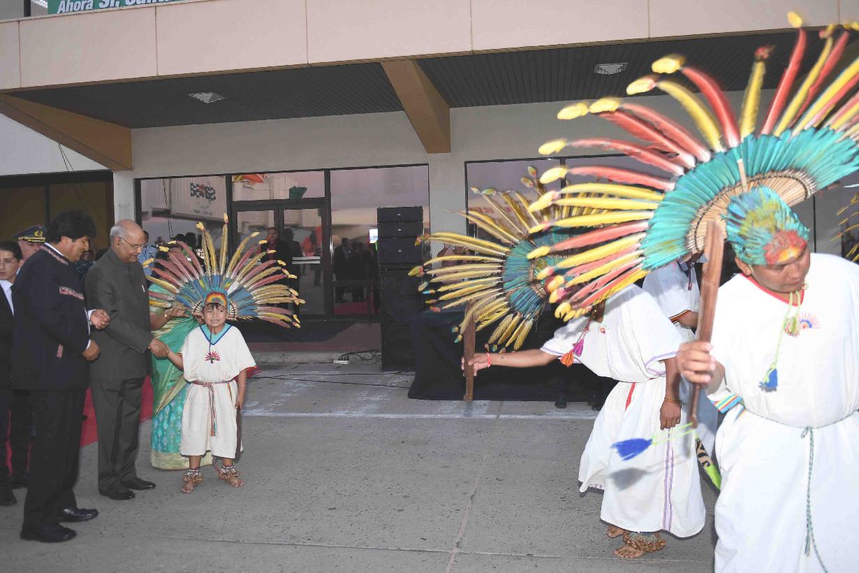 | Caption: | The President of India, Shri Ram Nath Kovind witnessing the cultural performances, at Viru Viru International Airport, Santa Cruz de la Sierra, in Bolivia on March 28, 2019. |