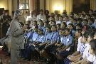 | Caption: | The President of India, Dr A P J Abdul Kalam administering the Pledge to the Students from Various Schools of Delhi towards the Concluding Part of the President's address to the Nation on the occasion of Independence Day at the Yellow Drawing Room of Rashtrapati Bhavan in New Delhi on Aug 12, 2006 |