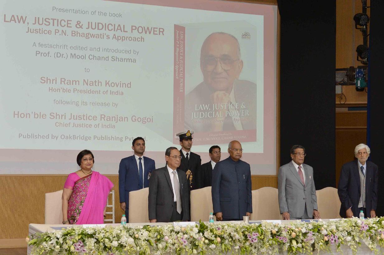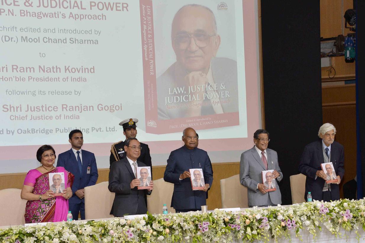 | Caption: | The President of India, Shri Ram Nath Kovind receiving the first copy of the book "Law, Justice and Judicial Power Justice PN Bhagwati s Approach from Chief Justice of India, Shri Justice Ranjan Gogoi, in New Delhi on February 08, 2019. |