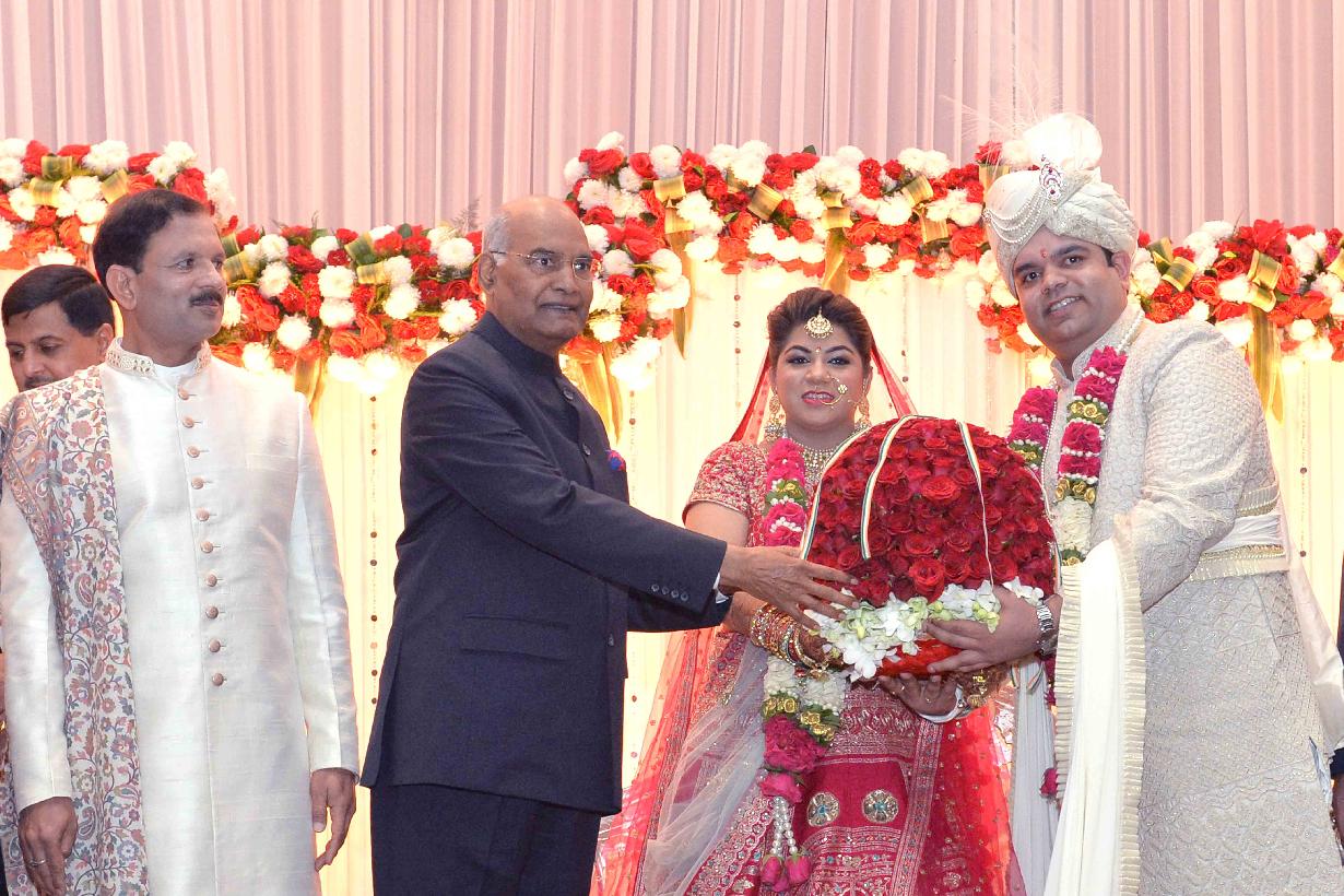 | Caption: | The President of India, Shri Ram Nath Kovind attending the wedding reception of Ms. Madhavi, daughter of Dr. Naresh Sharma & Niece of Dr. Mahesh Sharma, Minister of State (Independent Charge ) for Culture and Minister of State for Environment, Forest & Climate Change, in New Delhi on February 06, 2019. |