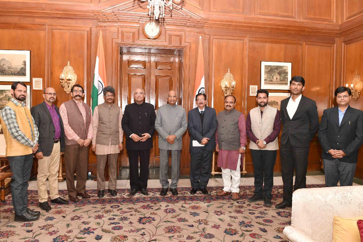 | Caption: | Dr. Mahesh Chandra Sharma, Ex-MP (Rajya Sabha) and Chairman, Research & Development Foundation for Integral Humanism with others meeting with the President of India, Shri Ram Nath Kovind, at Rashtrapati Bhavan on February 12, 2019. |