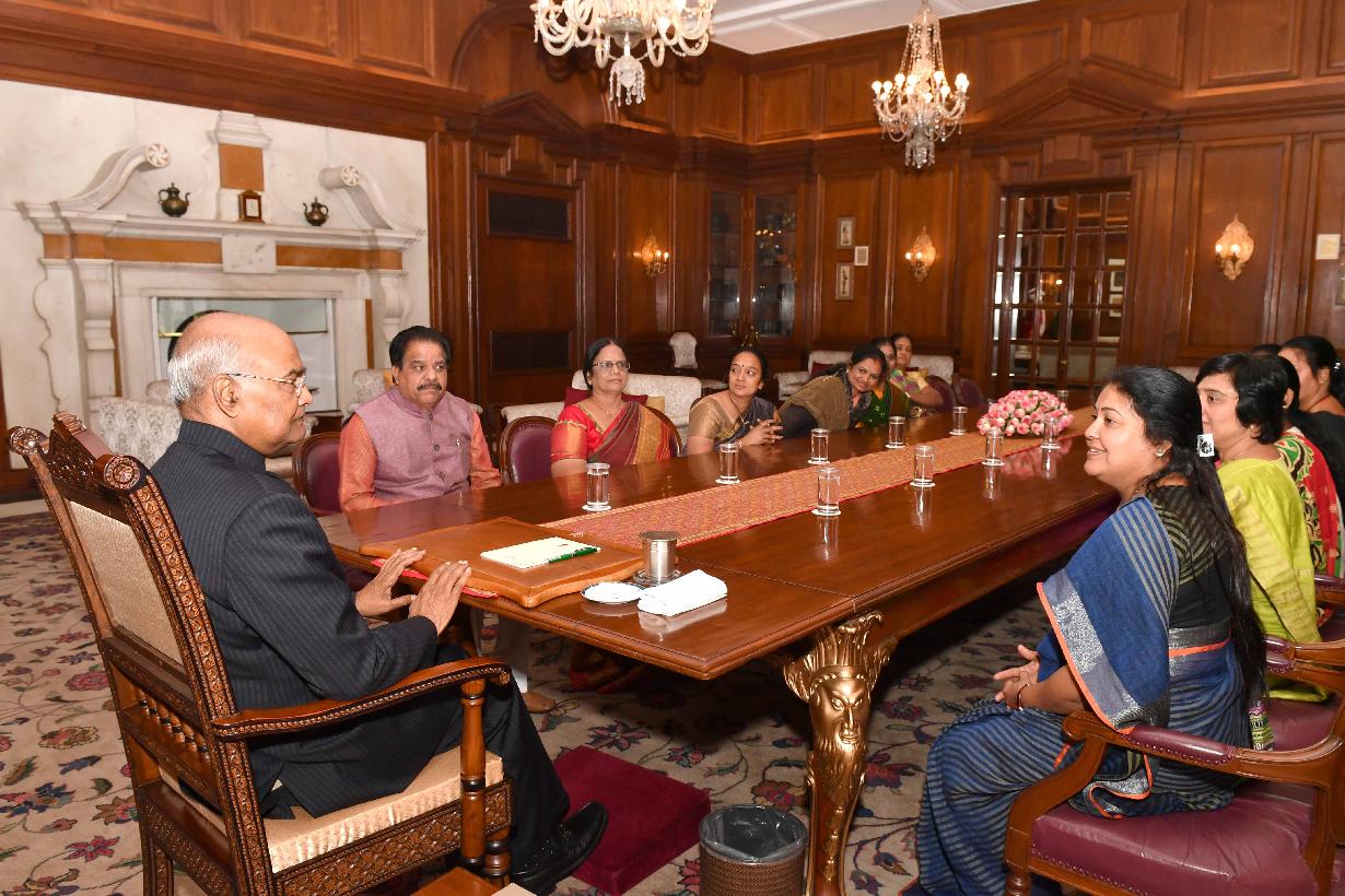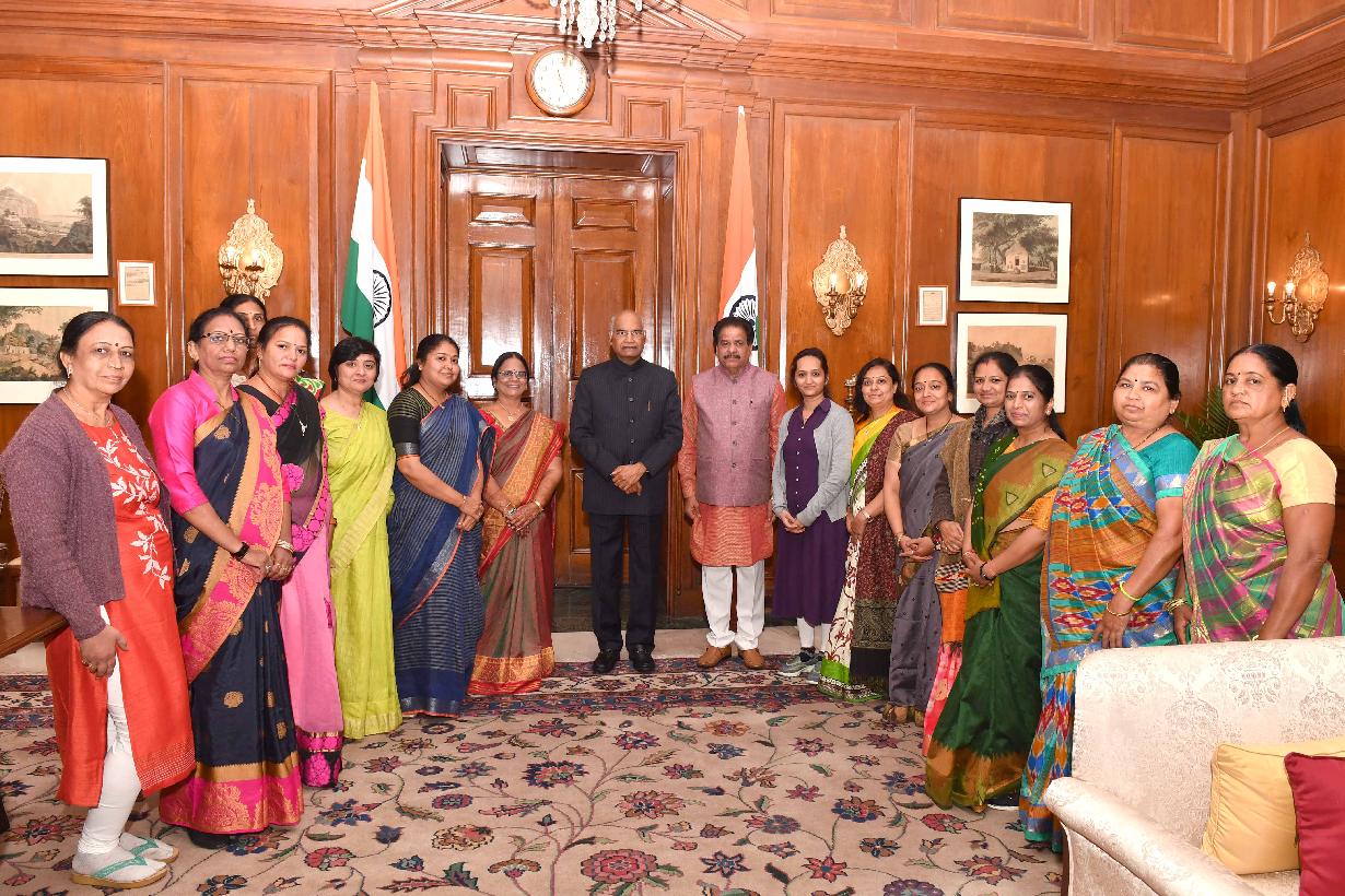 | Caption: | Shri Devji Bhai G. Fatepara, MP (Lok Sabha) along with a delegation of Zilla Mahila Morcha, Surender Nagar, Gujarat meeting with the President of India, Shri Ram Nath Kovind, at Rashtrapati Bhavan on February 14, 2019. |