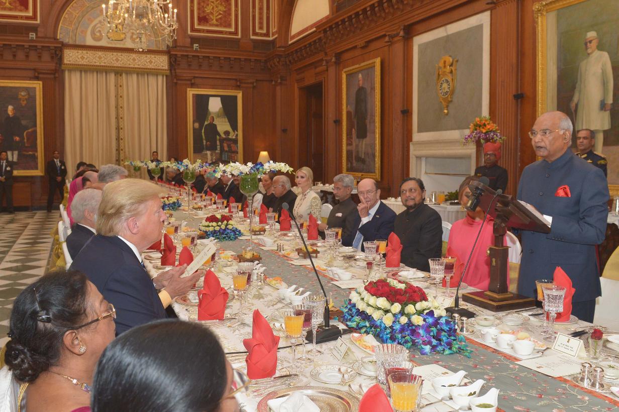 | Caption: | The President of India, Shri Ram Nath Kovind hosting a banquet in honour of the President of the United States of America, H.E. Mr. Donald J. Trump, at Rashtrapati Bhavan on February 25, 2020. |