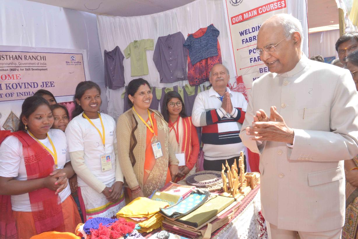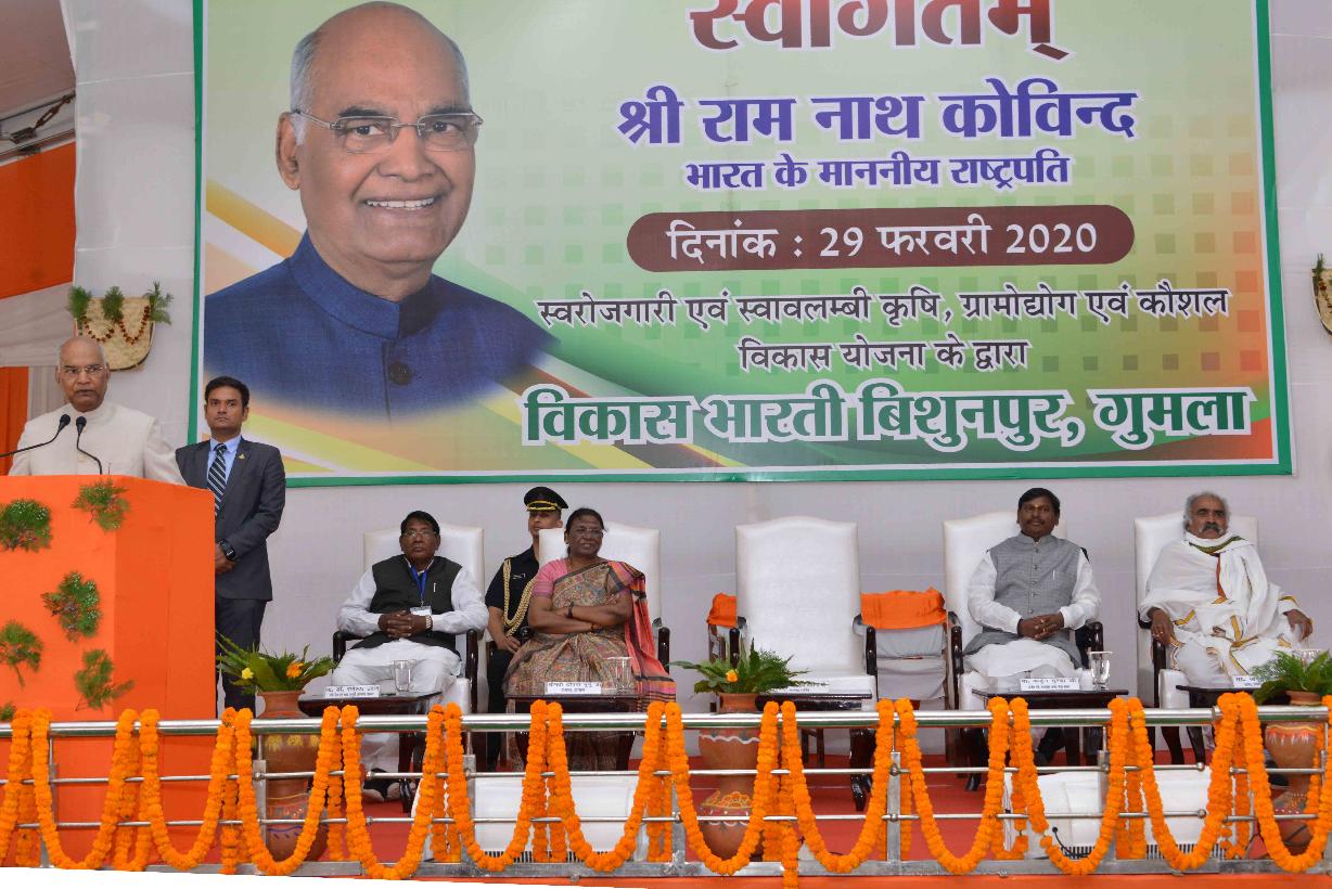 | Caption: | The President of India, Shri Ram Nath Kovind visiting the Vikas Bharati Bishunpaur, Gumla Tribal Centre, in Gumla, Jharkhand on February 29, 2020. |