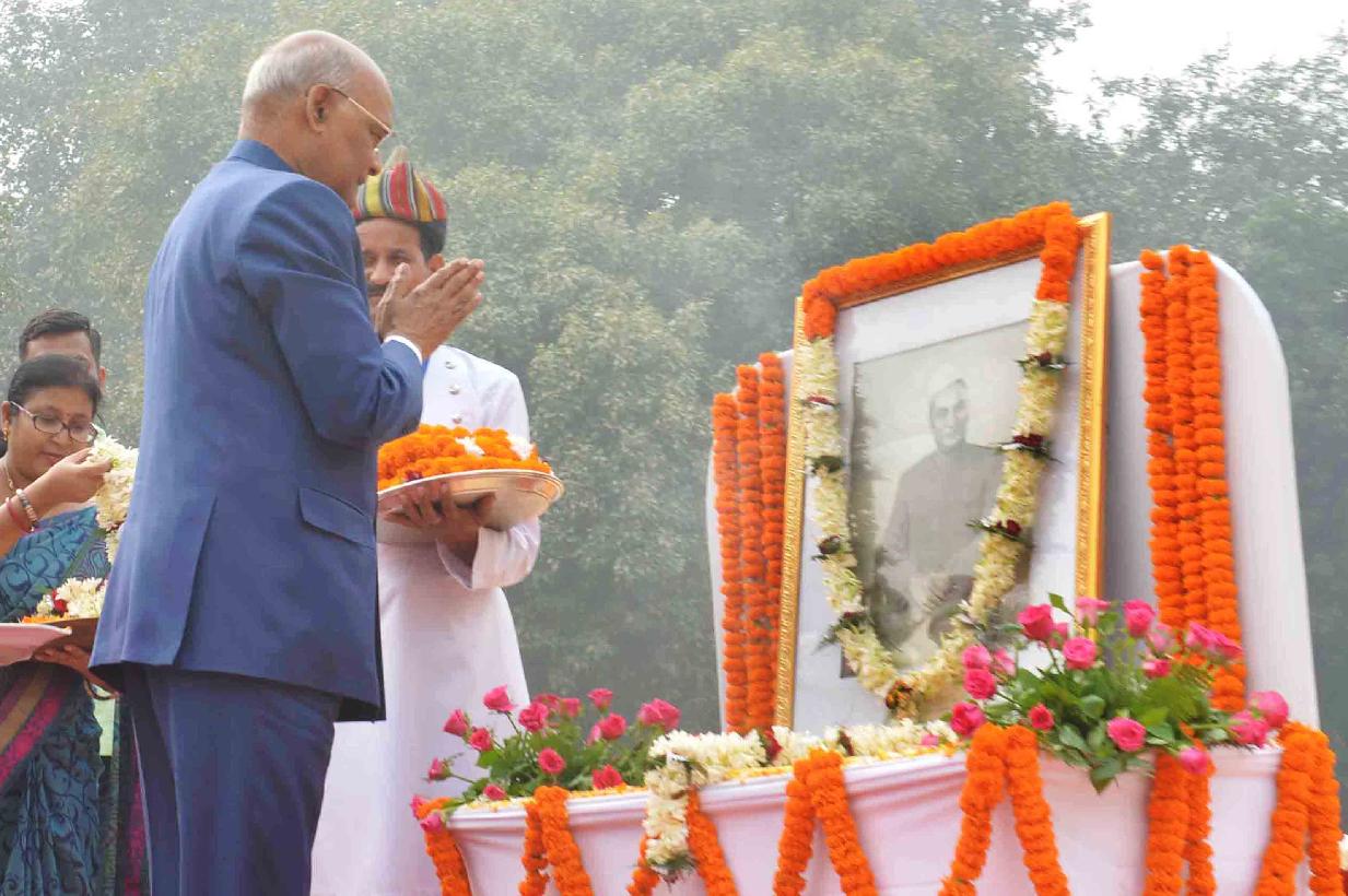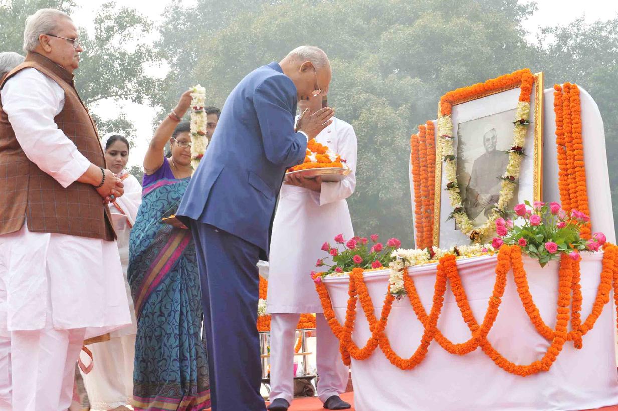 | Caption: | The President of India, Shri Ram Nath Kovind paying tributes at the statue of Dr. Rajendra Prasad, the first President of India, at Patna, in Bihar on November 09, 2017. |
