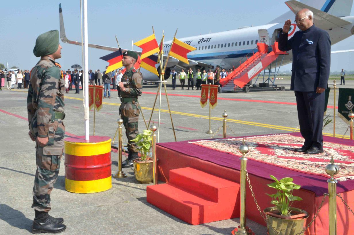 | Caption: | The President of India, Shri Ram Nath Kovind inspecting the Guard of Honour, on his arrival, at Imphal Airport, in Manipur on November 21, 2017. |