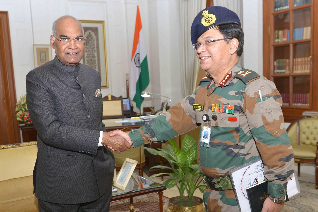 | Caption: | Lt. Gen. Bipin Puri, DG, AFMS meeting with the President of India, Shri Ram Nath Kovind, at Rashtrapati Bhavan on November 17, 2017. |