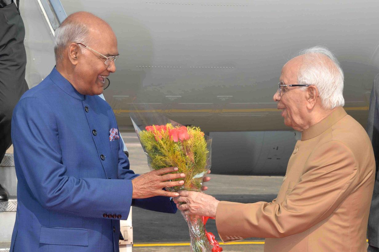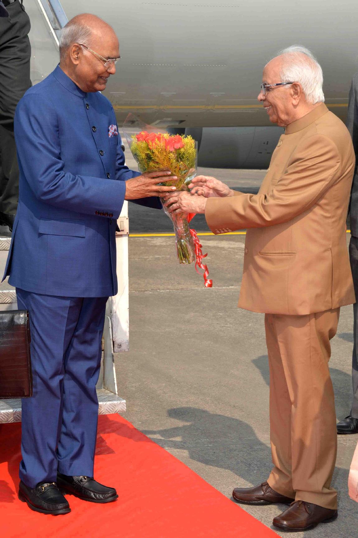 | Caption: | The President of India, Shri Ram Nath Kovind being received by the Governor, West Bengal, Shri Keshari Nath Tripathi, on his arrival, at Kolkata Airport, in West Bengal on November 28, 2017. |