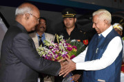| Caption: | The President of India, Shri Ram Nath Kovind being received by the Governor of Karnataka, Shri Vajubhai Rudabhai Vala and the Chief Minister of Karnataka, Shri Siddaramaiah, at Bengaluru Airport on December 29, 2017. |