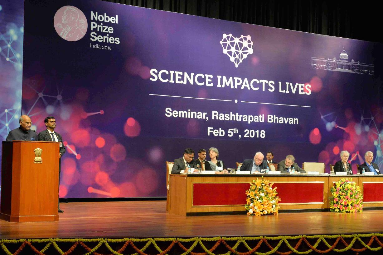 | Caption: | The President of India, Shri Ram Nath Kovind attending the concluding session of the Nobel Laureate Seminar (as part of Nobel Prize Series-2018), at Rashtrapati Bhavan Cultural Centre on February 05, 2018. |