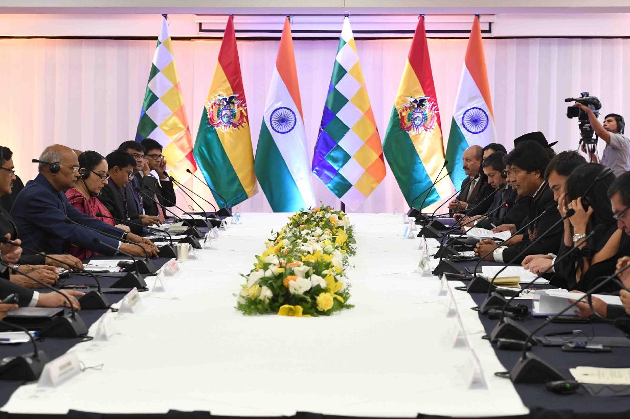 | Caption: | The President of India, Shri Ram Nath Kovind holding delegation level talks with the President of Plurinational State of Bolivia, H.E Mr. Evo Morales, at Hotel Camino Real, Santa Cruz, in Bolivia on March 29, 2019. |