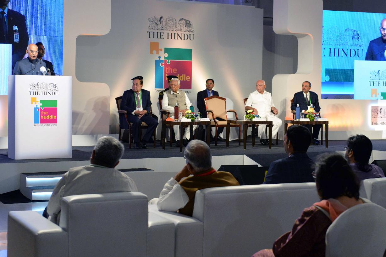 | Caption: | The President of India, Shri Ram Nath Kovind addressing the 4th edition of 'The Huddle' - annual thought conclave of 'The Hindu', in Bengaluru on February 22, 2020. |